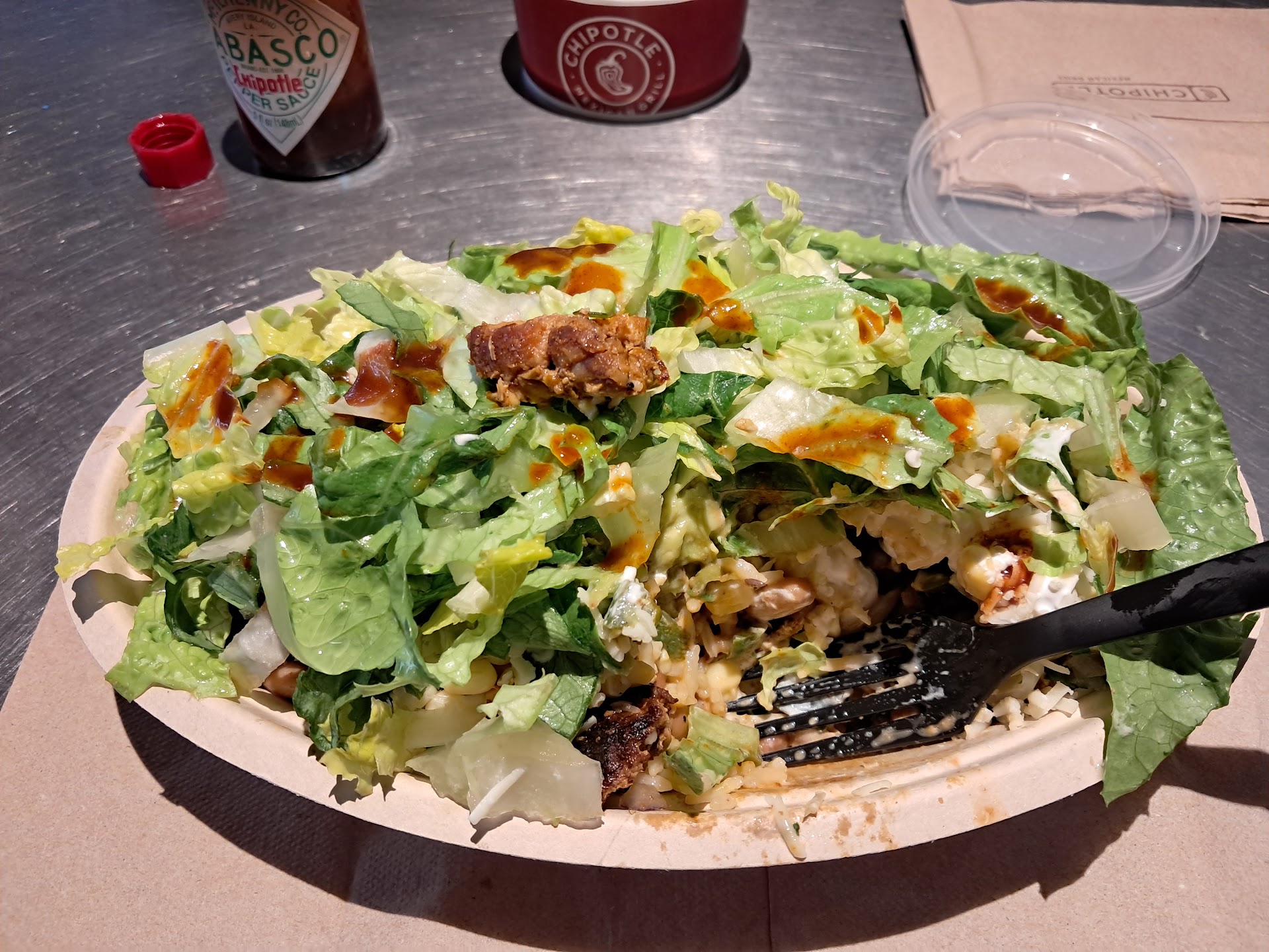 I had been planning to eat at a different restaurant [several blocks to the south] but that other restaurant had unexpectedly been closed so I ate instead at Chipotle Mexican Grill.