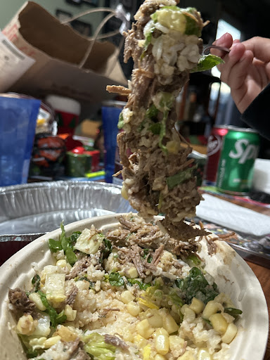 The serving area was also noticeably unclean. There was food spilled all over the prep area, and ingredients were mixed together carelessly. I don’t like spicy food, and some spicy salsa had spilled and wasn’t cleaned up. My burrito ended up getting some of it on the tortilla just from being rolled in that area. I asked the server to be careful with the second burrito, which was for my daughter, and even though I made a polite request, she didn’t acknowledge it with a word—just gave a look that felt dismissive.