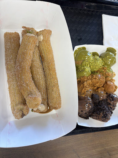 Read moreWow! We just got back home to try our stuffed churros. And omg delicious!!! We got one of each. A Nutella, lotus "cookie butter" and a pistachio one. She gave us an extra one and filled it with kinder cream!! We also got a cup of Dubai chocolate strawberries, and those are amazing!!! She was so kind, the store was very clean, and the oil was fresh!! We will...
