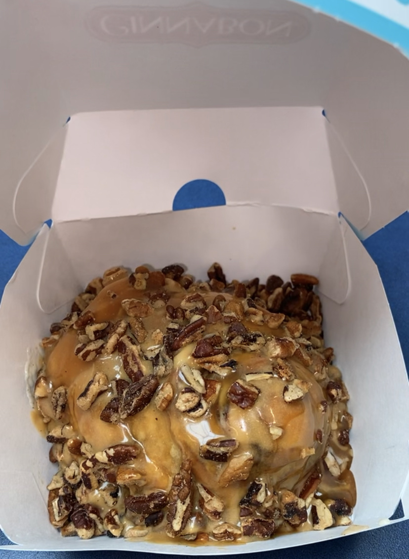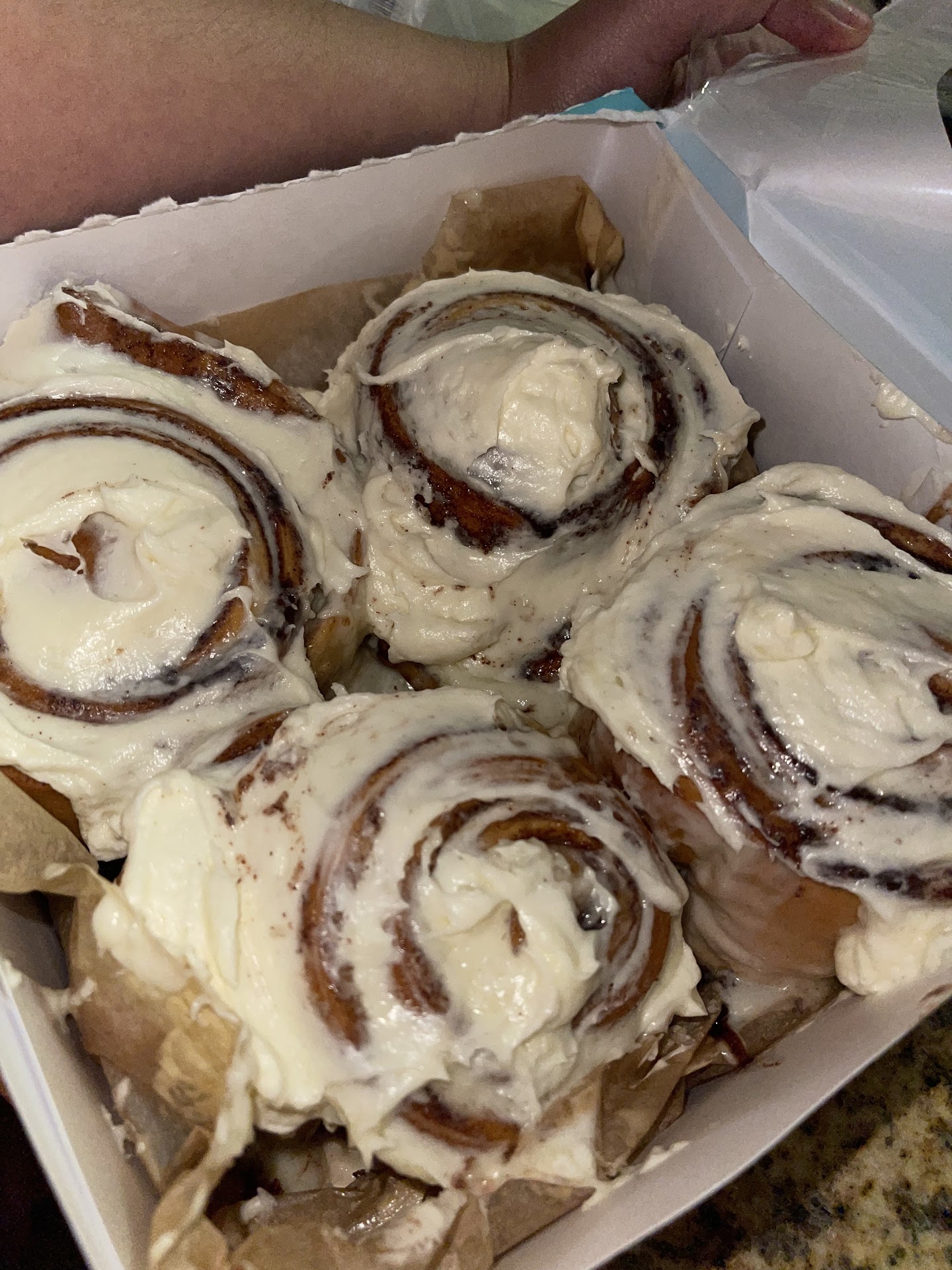 Read moreSo disappointed. We are a cinnabon-eating kind of family and have bought the Classic Cinnabon from multiple Cinnabons. From Germany to California, Texas to now Columbus, GA. This is by far the worst one we have had. They were underbaked, so very doughy. We had thought about just getting one of the 4 pack pre boxes of Cinnamon Classics, but they were haphazardly glazed; one with barely any glaze, another with way too much, etcetera. So, we opted on the "freshly baked" ones to our disappointment. Again, they were too doughy and yet the dry parts were burnt. Add to that, the lady taking our order was very impatient. I had to wait for the screen to change to see the menu (not sure that's the best idea), since we changed our minds about ordering a hot one. She just kept asking me what I wanted and I explained I needed to wait to see the menu again. I have in and got our "norm." (Chill, sweetheart. There weren't any guests waiting.)