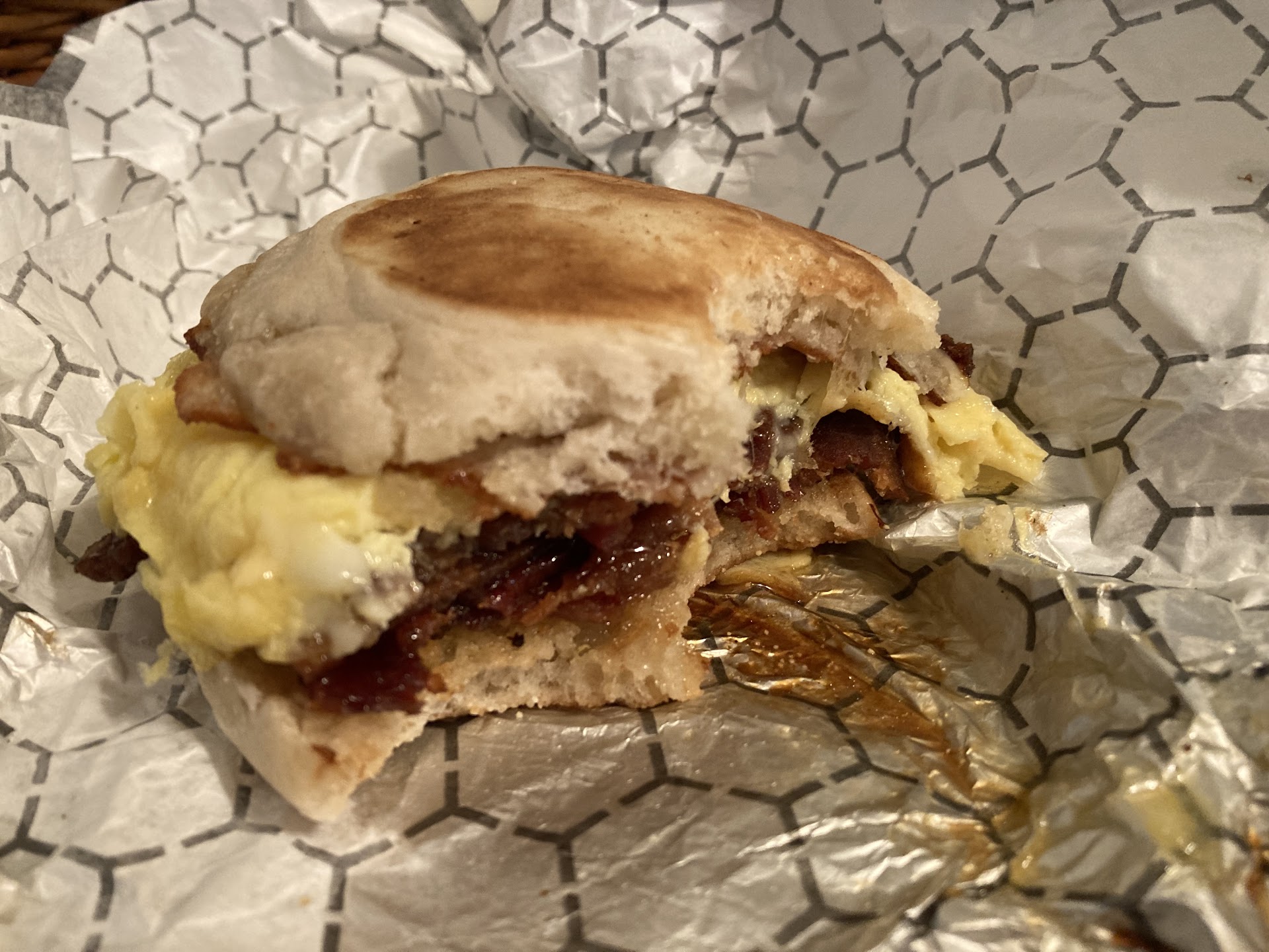 The breakfast egg hash brown muffin with bacon added was 10/10. It was amazing. Iām coming back for it. The taste and texture are perfect. So crispy and soft and fluffy. The strawberry sando was pretty good my friend LOVED it itās not my normal food so Iām not the best audience maybe. The omelette sandwich was pretty good, again not my normal food. It was sold out already but I bet my life the candied bacon is delicious. The wait was like an hour but thereās a cute cafe next door with an outdoor area with gorgeous flowers you can get a drink...