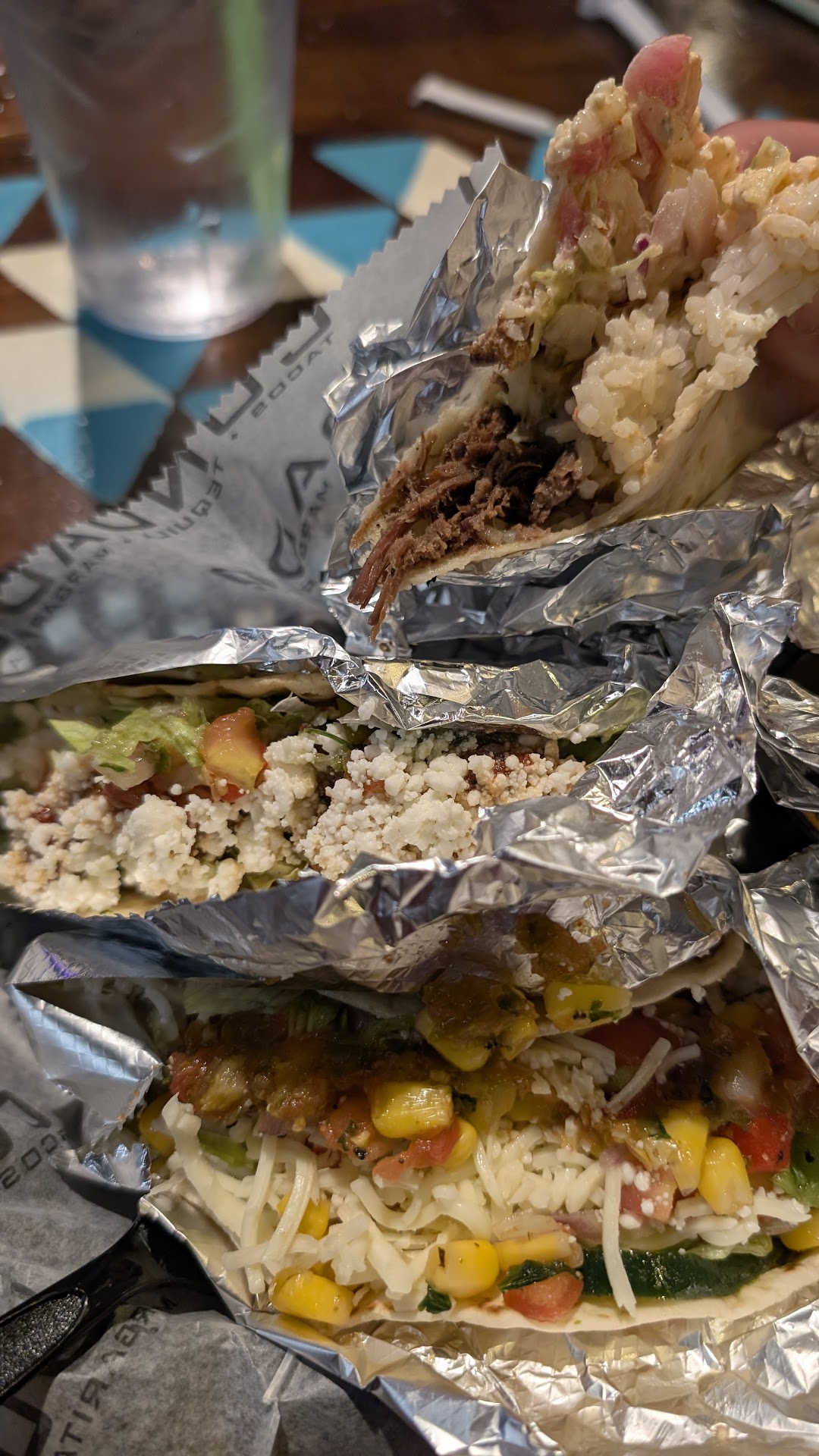 Read moreBest way to describe it. Hit or miss! I’ve had food like three times here and the first time I had it the tacos were bad but only because they like to add random ingredients to try to make the items look cooler rather than actually taste good because the ingredients they sometimes choose to combine together don’t work well. The second time I had it I did a build your own item and it was good cause I did exactly what I wanted and I did chicken which most of the time you can’t go wrong with. Delicious! The third time which was today was much like my first experience. The server was so monotone which was hard to understand and seemed almost annoyed when I asked him questions about if there were flavored lemonades. He pointed to the margarita mixes which is what I assume is what they use to flavor the lemonades. When I got my lemonade it was what they call “house lemonade” which I feel terrible for any kid that wants a refreshing lemonade cause that stuff was so sour I couldn’t tell if they SPIKED it or not which is bad because I’m underage! Then I got the steak which was meant to be spicy but the steak had like almost not flavor but left me with and itchy throat rather than a spice which is not something you want when you want to enjoy a meal. Again, they try to do stuff with like combination of interesting flavors and try to be different both aesthetically and with taste but they do too much with the taste part. Idk just order something you like with the build your own but the flavors of what you build might not go well together because of how goofy and “unique” they attempt to be. They almost focus more on how cool things look rather than the food. Also my...