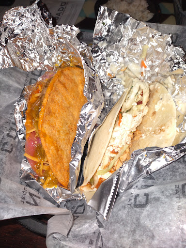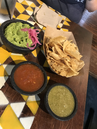 Ā Ā Ā Read moreDecore is funk and fun. We ventured in after seeing the lights on the common. We order the trio of salsas wanted to try out a variety. For 13 dollars your get a decent amount if chips and dips. The guacamole was a little bitter think it needed some salt. The pineapple salsa was very tasty my boyfriend said he preferred it a little more saucy which for chips I understand but to go on the tacos I dont mind it chunky. The queso was super good came with chicken and black beans inside and a dirty hot sauce which we got on the side (it was hot) probably my favorite item. We ordered three tacos from the build your own. The hard shells dont hold up the break but still remained crunchy. The meat ratio pretty good. The chicken is shredded and maybe a little to wet drips everywhere but I prefer that over dry. The chorizo had good flavor if you don't mind cinnamon not my fav kind reminded me of Lebanese food. The brisket was my favorite and was stuffed full. The lime crema was to bitter and over powered the taco. The honey Chipotle sauce sweet and spicy was nice. Ordered side of rice...just plain white rice with no flavor. Over all I enjoyed this place tacos a little pricey for the size but the going rate for these types of places. I think the best bang for your buck would be the nachos 7.50 and you get...
