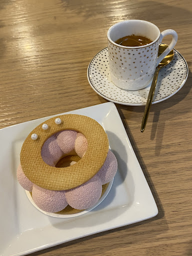 Read moreThe pastry I got was absolutely delicious. Had these balls of a cream stuffed with a salted caramel type sauce with these shortbread circles on the top and bottom and cute edible pearls. The flavor reminded me of a Twix. The one I chose didn’t have a name in front of it in the glass case like the others, so I’m not sure what to call it, but it’s an 8.8 out of 10 for me. Presentation gets a 10 for me on that. Loved how it was powder pink and cute but not like a strawberry flavor. It’s just pink for aesthetic. I love pink. The espresso I’ve had better but I’d rate a solid 7.8 out of 10. Presentation just felt normal to me. I did love the gold spoon though so I give it a 7 out of 10. I ordered up in the front, was given a table number and picked a table. My pastry and espresso was brought to me. Staff was kind and professional. Not too much or too little. The atmosphere was warm and bright, felt festive with the holiday decor. Only thing I didn’t like was the spacing of the tables. There’s one very very large table that feels wrong to sit at if you’re not in a group that’s taking up a lot of space. It’s pretty, but I feel like that space could be better utilized with smaller more spaced out tables that could be pushed together if needed because that table takes up like half of all the seating area. Regardless, it was a good experience and I’ll be back. The place was also decently priced which I love. Espresso and a pastry for a...