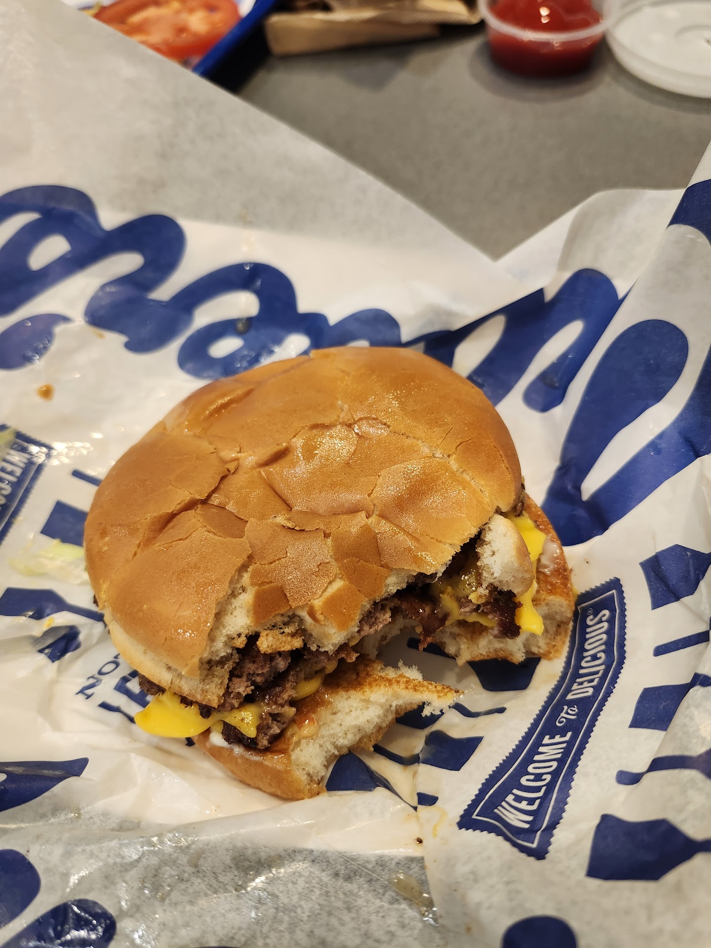 Walking in: As soon as I stepped in the door I was greeted by the staff, all clean, properly dressed, smiling and a shining example of a good first impression. They all gave me attention and I didn't feel like I was waiting to be acknowledged. After the extremely professional young man took my order I had a seat and waited for my meal in anticipation. I went with the double bacon burger and a expresso frozen custard.