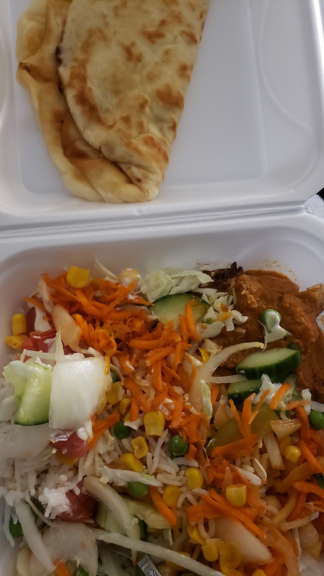 I ordered the chicken, rice, got all toppings, and Roga Josh sauce on top. I was really excited to try it and at first, it tasted like traditional Indian but the more I ate it, the more I didn't enjoy it. The sauce is good, but it was missing something and wasn't as seasoned as I expected; spicy but not seasoned. We tried the Korma sauce and that was better than I expected; it was flavorful and seasoned well. The topics were okay, seemed like generic out of a can or cut veggies toppings (corn, carrot, chickpea, cucumber, onion, etc.). Overall, it's was an okay meal, nothing special or unique. I was a bit disappointed. However, their Naan was my favorite part because it was buttery and delicious; it's not crunchy or crispy if that's what you're looking for, but super soft and fluffy.