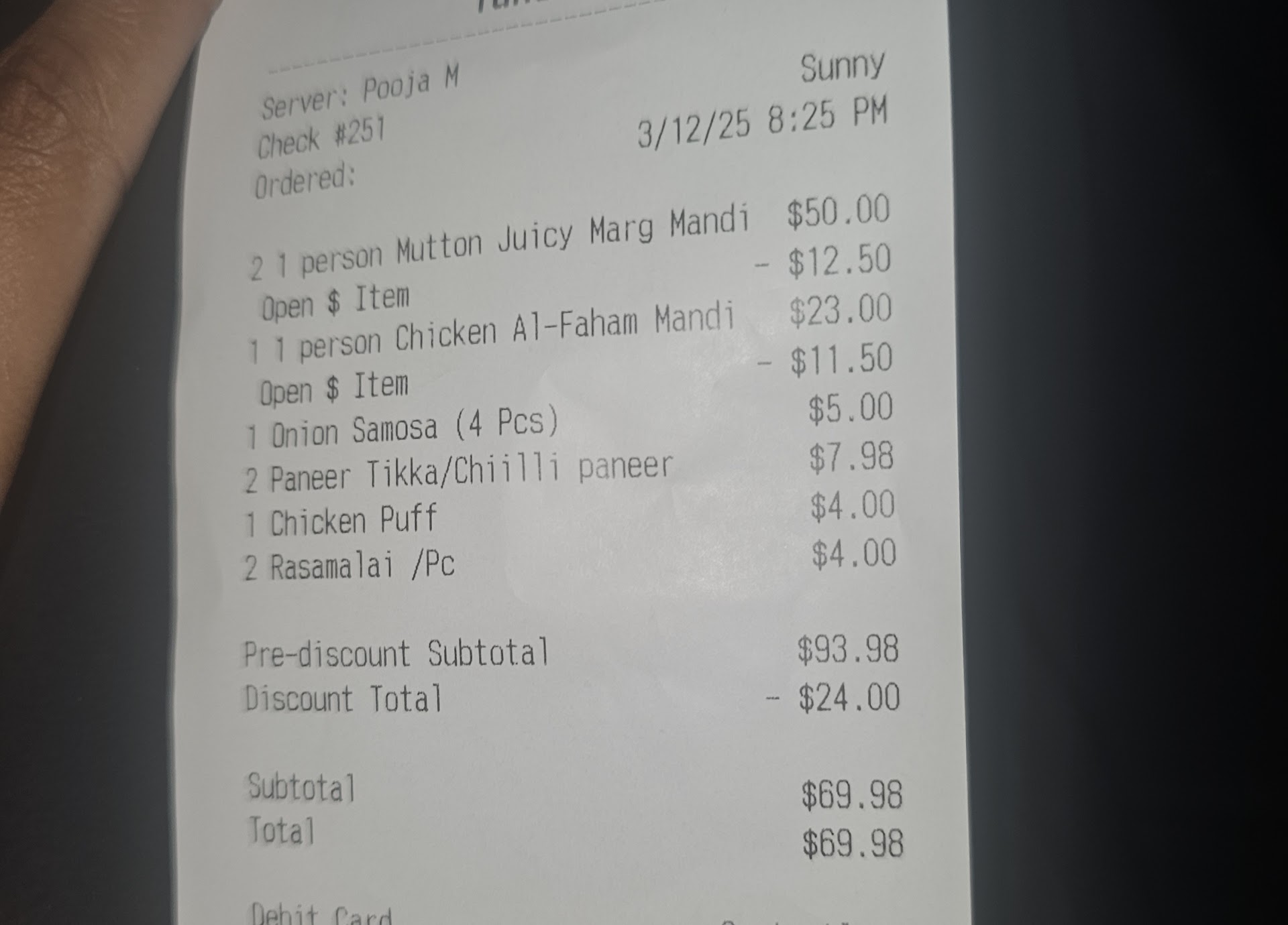 Read moreSampled their Mandi Biryani last night, and unfortunately, it was subpar. The rice was undercooked, excessively salty, and too dry for my taste. Having enjoyed a delightful Juicy Mutton Mandi in another city, my expectations were high, but this experience fell short. Hoping for improvement as they move forward.