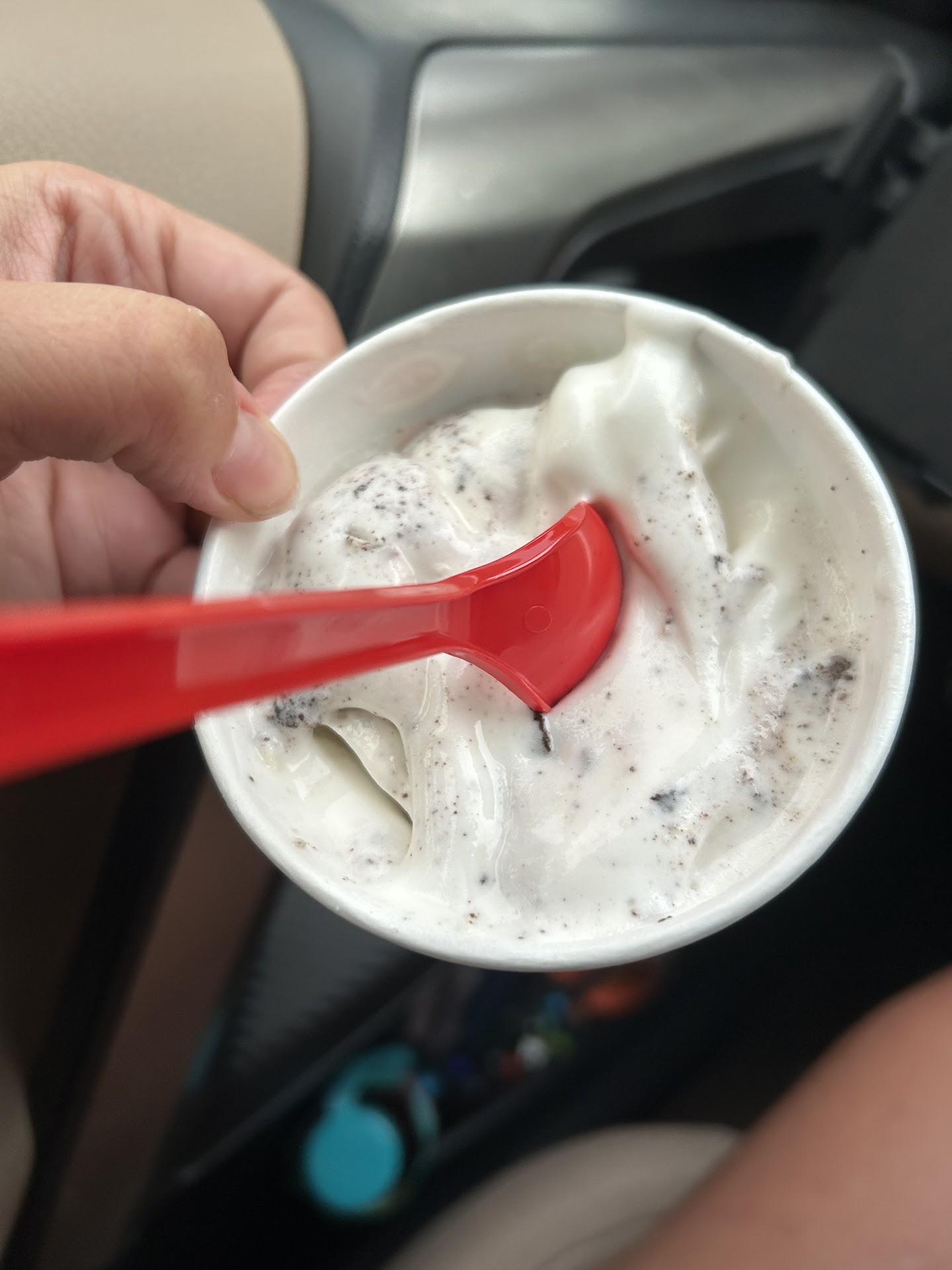 Dairy Queen is a fond childhood memory for me, but not like this. No one likes ice cream all over the sides of their blizzard such that it runs down onto their vehicle’s console. No one likes sticky hands (from grabbing the blizzard) all over their steering wheel. No one likes their order thrown in the bag (upside down fries somehow).