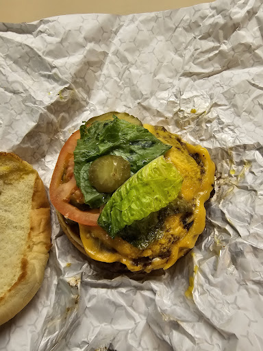 Read moreCo-workers raved about this place. So I thought I'd give them a shot and order a cheeseburger for lunch. I ordered online for pick upn which only allowed a max of 4 toppings, each of which cost a nominal amount and didn't actually include the cheese though it was a cheeseburger I had ordered...cheese was .75, lettuce was .25...you get the drift. Ended up costing $8.40. It was ready in exactly the time they said, so kudos on that side of things. Yet, I have to say this was a little pricey for what I actually ended up with (see my pic). I got a whopping 2 pieces of romaine lettuce from the looks, that were not simply wilted but had gross brown/slimey ends. I got all of 2 pickle slices as well. I did get a side pickle spear, but not a snappy dill spear as one would expect, it was also rather limp and wilty. The burger itself tasted...well it was just ok, nothing special and kind of dry. Overall, I am super disappointed. I expected so much better! I love a good burger. This wasn't it by a long shot. Maybe it's better if you go and eat there in person?? I don't know and likely won't as I really don't think I'll...