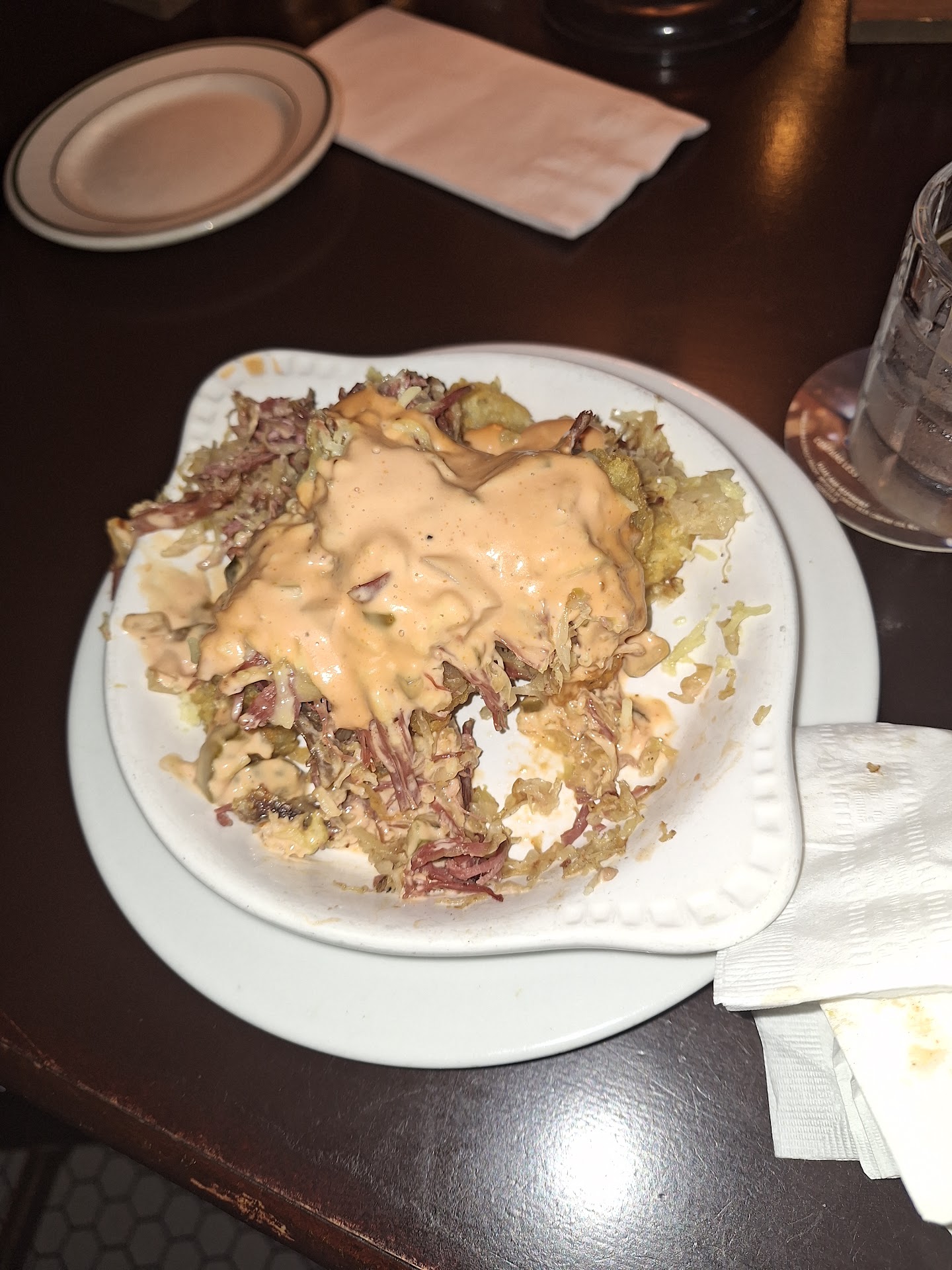 The regulars next to us recommended the hash. It was on my radar, and I was not disappointed. The corned beef brisket is cooked on site for the hash, with redskins, carrots, and scallions. We met Mr. Dempsey, who told us many of the meats are from Falters Fine Meats on Greelawn. The meats were tender, flavorful, and not fatty. Potatoes were forkable tender. My over easy eggs were yolky as ordered. I would have been over the moon if this was served with a spicy brown mustard side. A must try if searching Columbus for true Corned Beef Hash.