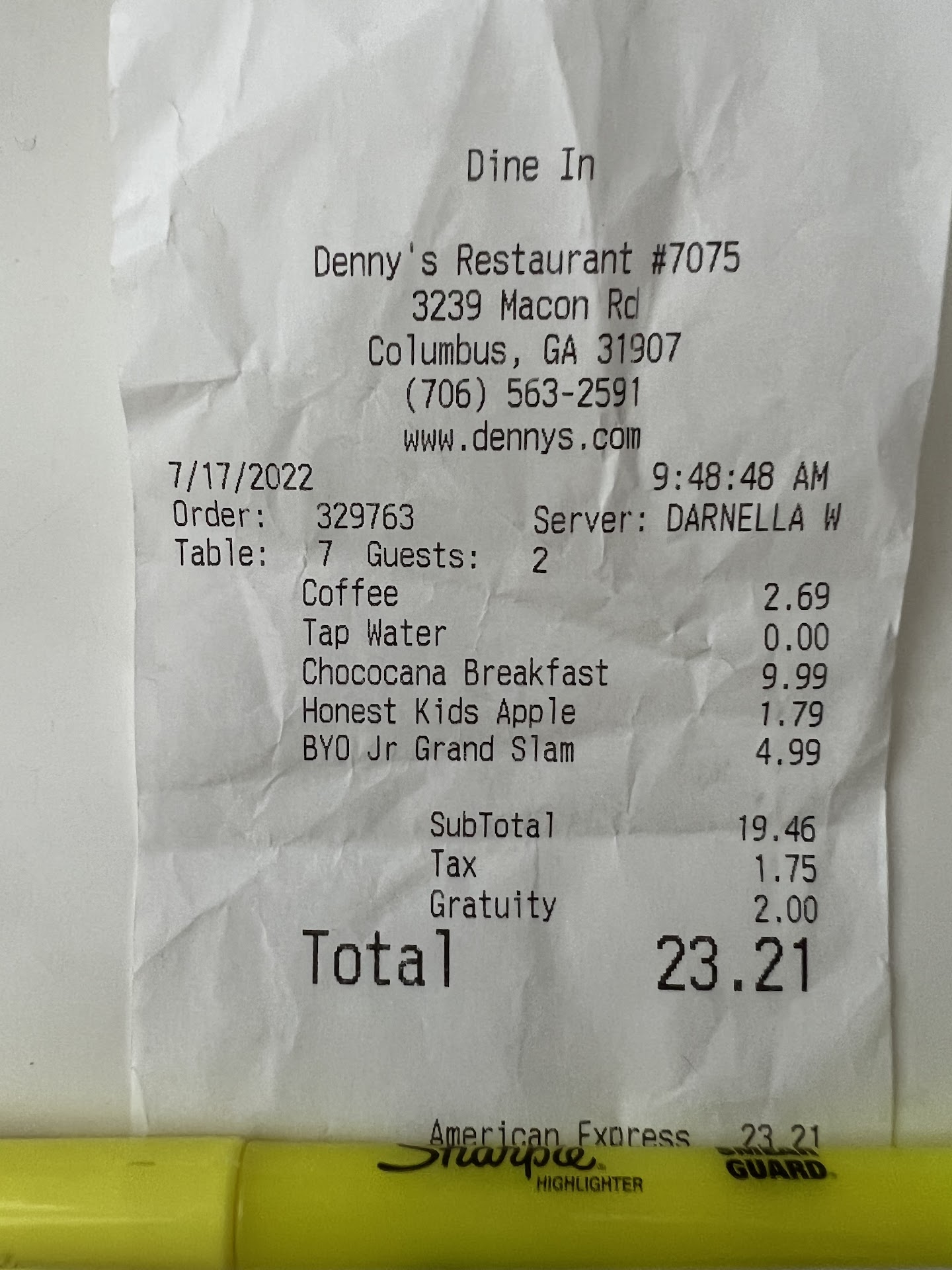 When we received the check we noticed an additional item on the check (an extra drink) but they did correct it after we brought it up. Normally Denny's is great, but I think this one is the exception to the rule, I would highly suggest avoiding...