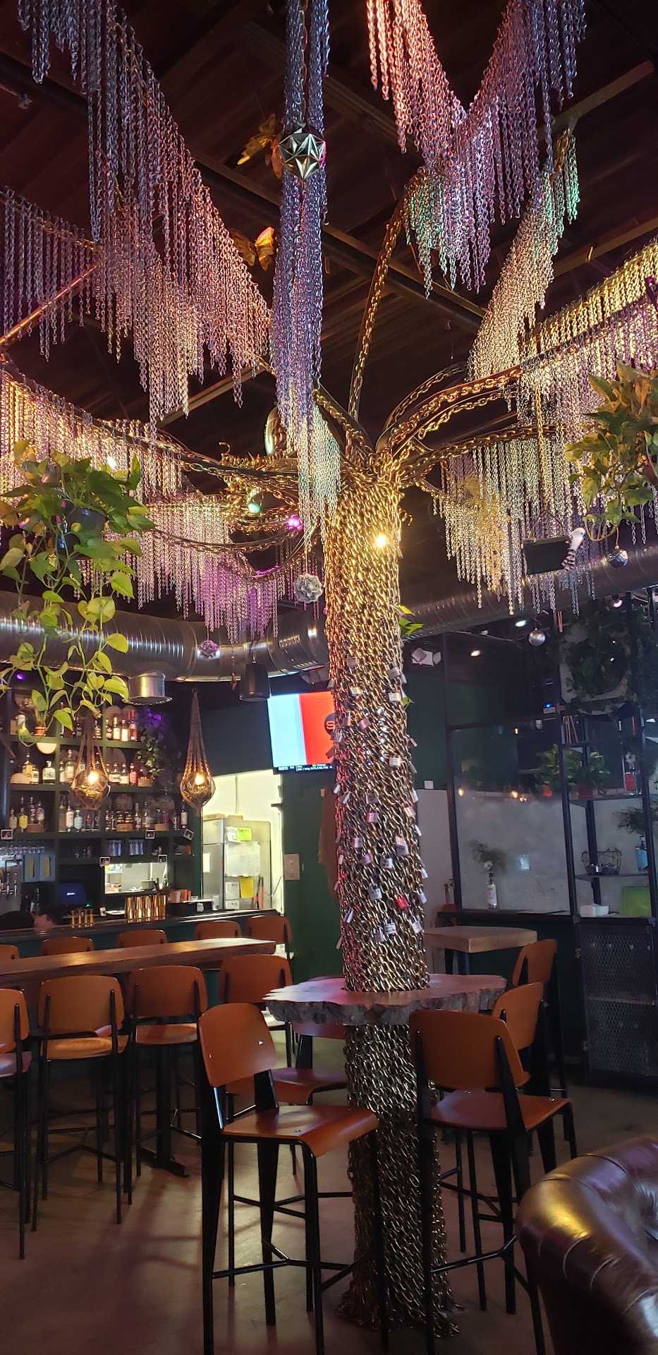 Service and place was nice. Plenty of seating. They gave me paper menu since I don't really do the whole scanning menu thing. Service was quick and very courteous. Good work. I like to sit at the tree, which doesn't have a lot of room as far as maybe eating a pizza, but is my favorite spot