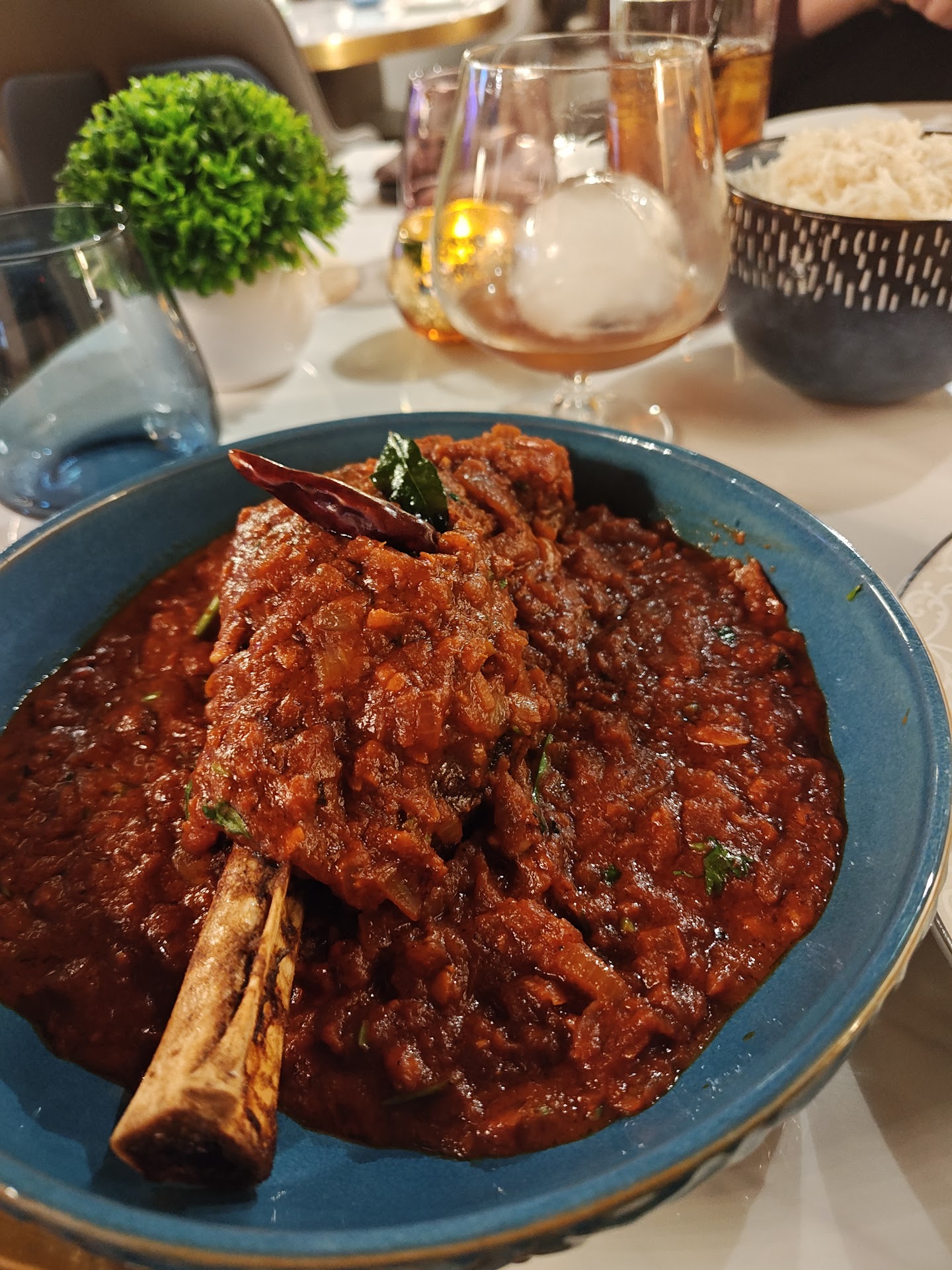 I had the lamb shank, wife had the chicken tikka masala. Very well rounded flavors. Tikka was smooth and rich and the curry with my lamb was a perfect balance of savory and spice. The spice was very well balanced. Not overwhelming or intimidating, but not weak and bland either.