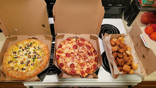 Saying this review because I will never go to this location ever again because of a temp manager constantly on her phone facetiming somebody while she makes pizza the whole hour I was there, and my free rewards order pizza was wrong after the fact she said she never got it, but then later it was made, then then the original pizza was mixed up with another guys order that left the place! So I waited even longer for everything to be completed including them retiring up a second pizza then she put those bad green peppers on it anyway founding out and all I wanted was one pepperoni rewards large pizza, what do I get? I get a medium pepperoni with green shriveled up small thin sliced green peppers on it.