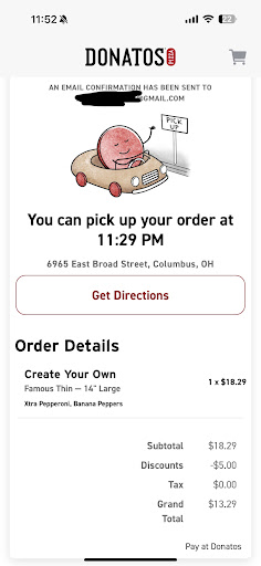 Get home, pizza is cold and overdone.