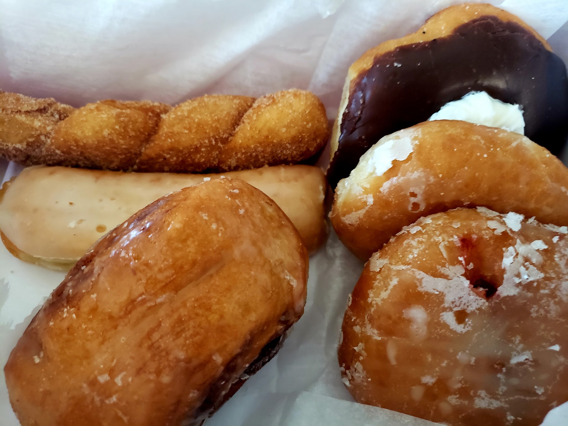 I've never been in personally, just had my foreman bring these in a few times for us. So I can't speak to their service or anything about the location. But their donuts are top-notch! These guys are in my top four of best donut locations I've experienced. They're on the smaller side which is perfect and gives the fillings and glazes a better ratio compared to fried dough, instead of just big chunks of dry flavorless bread with a DOT of jelly or cream on the inside. Also everything has a slight bite of crunch on the outer skin that just gives these great texture. IDK what it's called, but my favorite is a flat and square Pop-Tart looking thing with holes through it that is just chewy and crispy and sweet and heavy and heavenly...