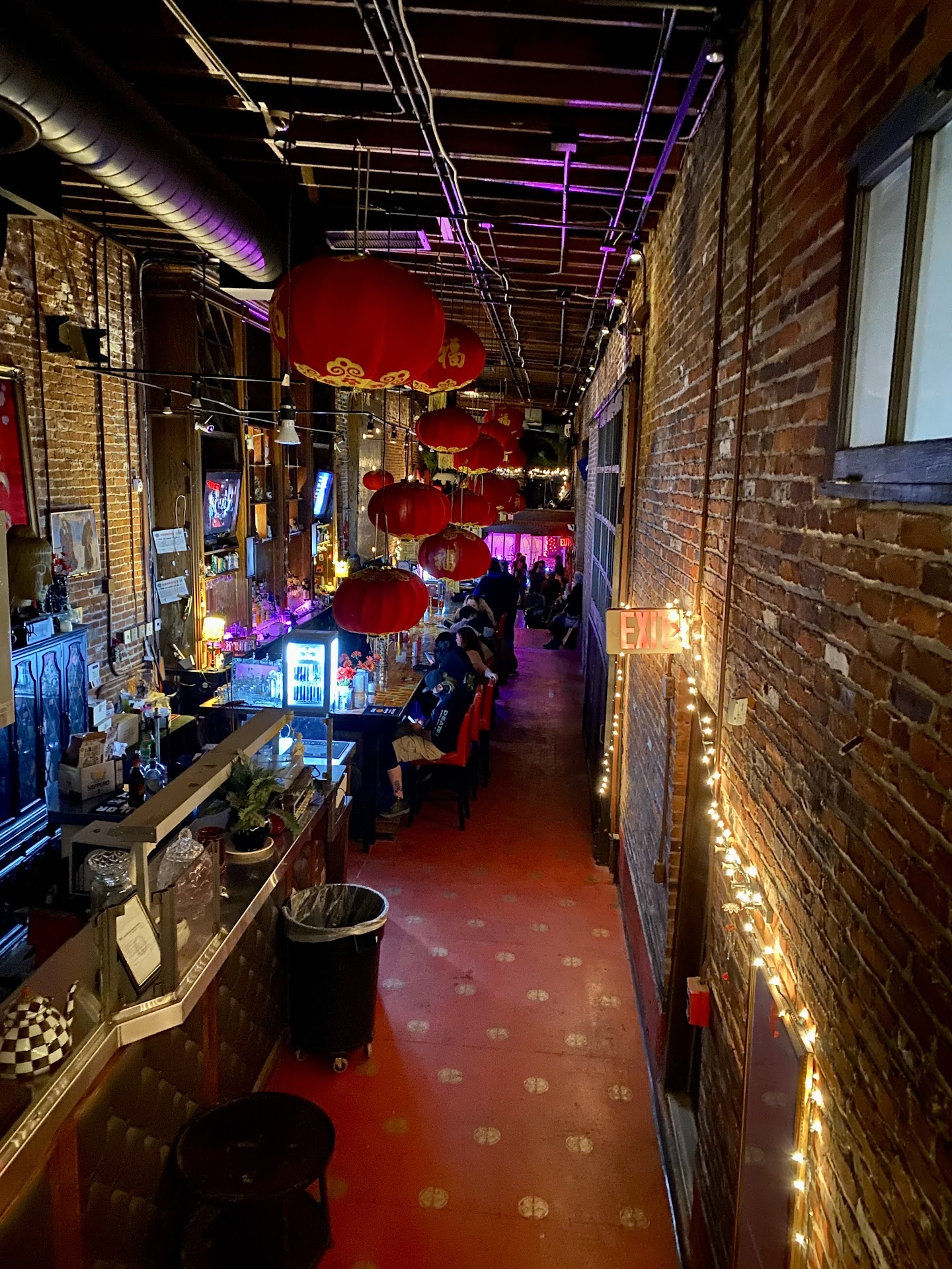 Attended a show at Double Happiness. They have comfortable bar stools and a great patio with lots of seating including a swing. One of my least favorite things was the restroom. It is up a flight of metal stairs, one of the restroom doors does not lock, and the stall walls are made of a translucent turquoise acrylic. You can actually see the movements of the person in the neighboring stall, and it is an unsettling experience. They have many unique looking cocktails, but I thought their prices were a little high, it could be due to the location. The bartenders were great and super friendly. There are many small sets of stairs throughout this bar, so someone in a wheelchair would have a really tough time here, as would someone who was very...
