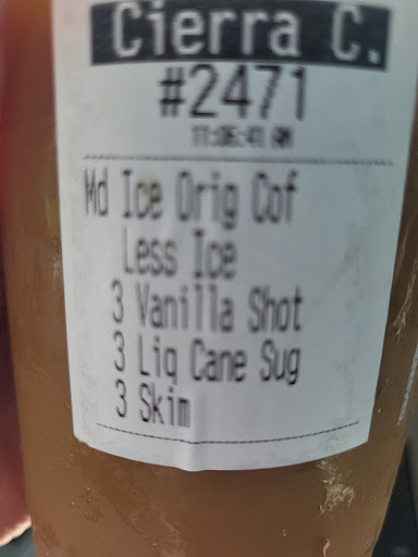That was after I told dude at the window I wanted milk on it. He said 3 pumps skim milk. Okay then....so literally not even a half ounce of milk. I told him fine, I have milk at home I'll add it myself. He hands me a cup of milk. Well, that spills all over my car and me. And when I dump out a good part of my coffee and my ice to get my coffee not black anymore it spills all over my hands. He gave me some napkins at least. All of this, plus the detailing I'm going to have to pay for to have the milk shampooed out of my seats could have been avoided if they just made the coffee correctly, or took "no, I'll fix my drink at home" as an answer.