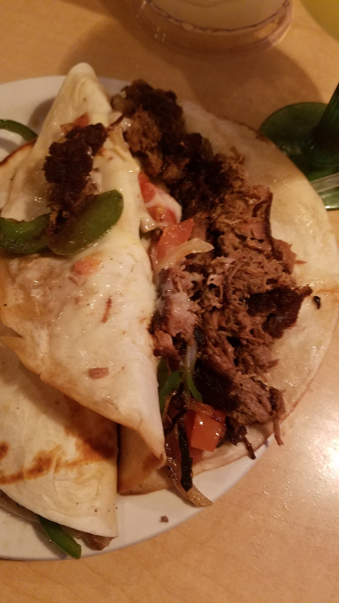 I had the beef tip quesadilla and a shredded beef quesadilla. I ordered it with the fajita vegetables and OMG the shredded beef was BY FAR THE BEST I've ever had. The beef was charred perfectly and as you can see there was zero grease present in the quesadilla. How they achieved this I do not know. It has me wanting to sell my house and move to Columbus just so we can make this our new weekly restaurant to attend.