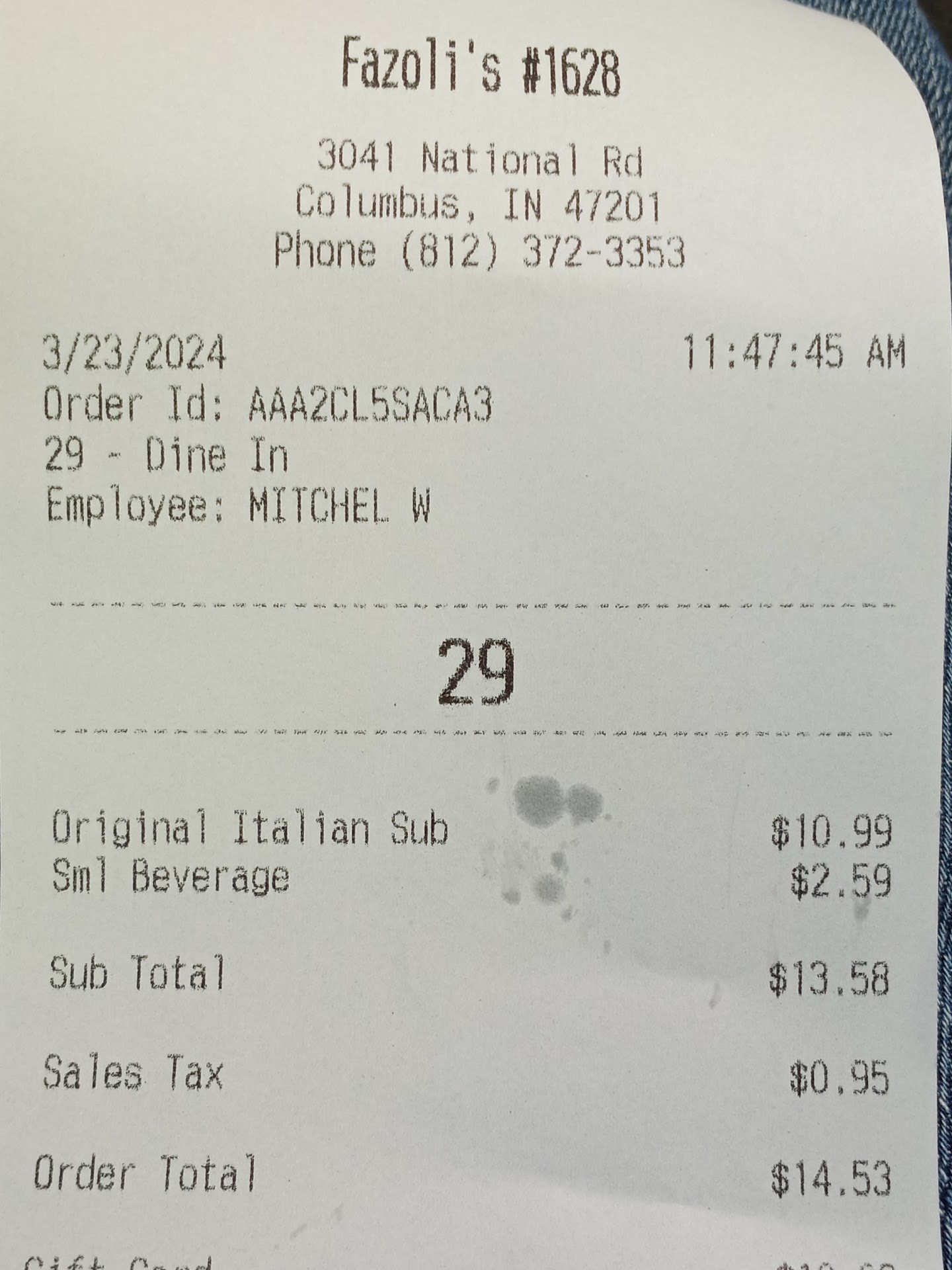 we used the kiosk to order which is probably the only reason there wasnât an issue sooner, the receipt printed blank which was already a little annoying but not a big deal at all so i didnât say anything.
