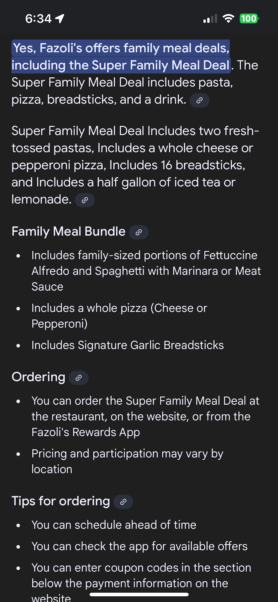Read moreI absolutely love Fazoli's. It is my favorite restaurant. However, today I had a very bad experience. I went to eat with my brother, sister-in-law, and nephew. They had a new item on the menu that we all wanted to try. So we each ordered our regular meals then I also ordered the new item for us all to split and try. When they brought us the food we were sorting it out and the worker asked if I ordered two meals by mistake. I said no and he laughed. He then said "The last time I saw a women order that much food she was pregnant with twins!" I thought that was extremely rude. After that he kept close to the table the whole meal so that we could not even talk to each other and catch up. Also, he kept touching my one year old nephew everytime he passed the table. I go to fazolis quite a bit and see him often. To avoid seeing him again I will not go to the restaurant as often or I may even go through the drive though so I don't have to see him. Maybe then I can enjoy my favorite meal in peace without being judged. (I remember the name of the employee, but I do not want to publicly shame him and hurt him...