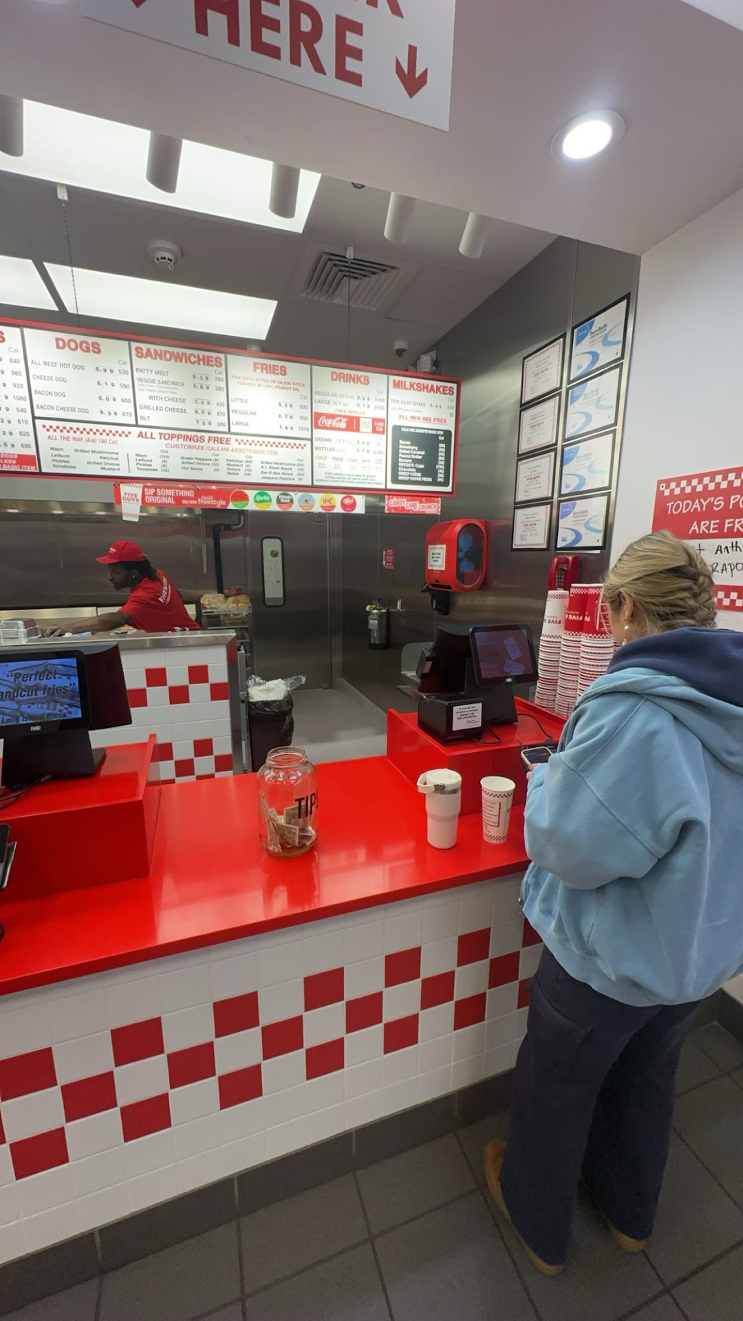 Read moreI used to LOVE Five Guys and went weekly, but they prices a have gotten CRAZY high - even just fries costs more than the whole meal should.