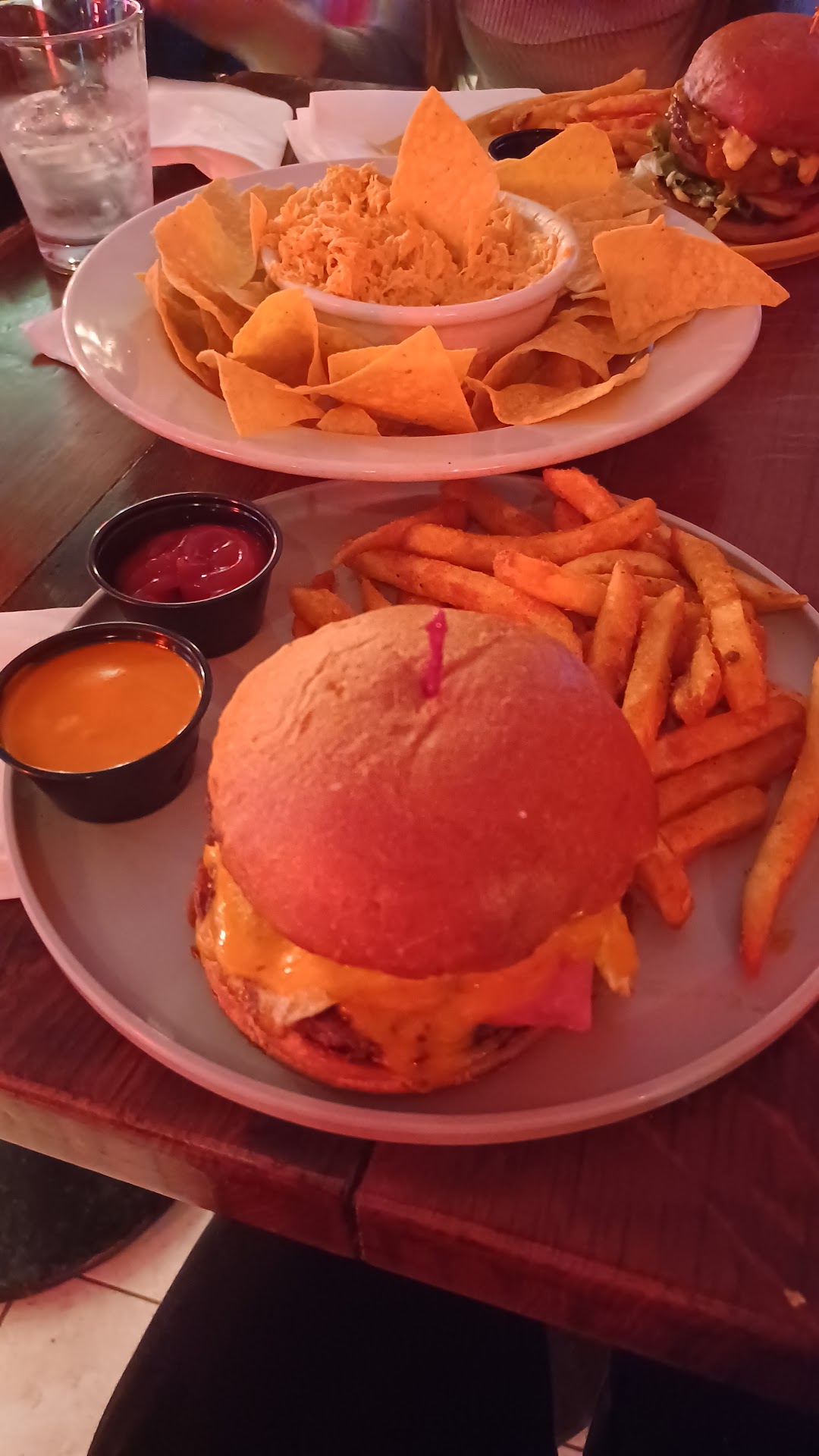 no, the main event really is the drink selection. i may not partake anymore, but the taplist, the house cocktails, the selection of shots, they've got it all. whether you're looking for a cheap basic or something new and adventurous, they have something for you. what we came for was the food -- and lemme tell ya, they got that too. we both had burgers, but it seems like all of their sandwiches are S tier. there's something about the presentation, the selections made in accoutrements and condiments, that melds so well with the campus bar environment. being here really does make you feel like you're back in your college days.