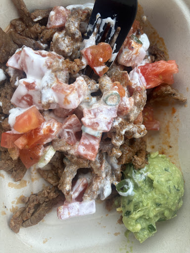 Read moreWhole pinto beans, no refried beans for the burritos, warmed tortilla no browning so when I opened my burrito the uncooked tortilla just breaks apart and is a little soggy, they don't warm up the burrito either so it's unmelted cheese in the burrito, the unseasoned steak seemed luke warm, and if it was seasoned there was no taste to it. Some say this is better than Chipotle, no I disagree, I'd rather eat a quesadilla with good chipotle sauce from Tropical cafe or rather Taco bell even. Small drink for large proportion. Hot sauce?..Or salsa was extremely unsatisfying, the salsa could have made this a cohesive burrito to help tie in some flavor but no it was not exciting at all. Can't say...