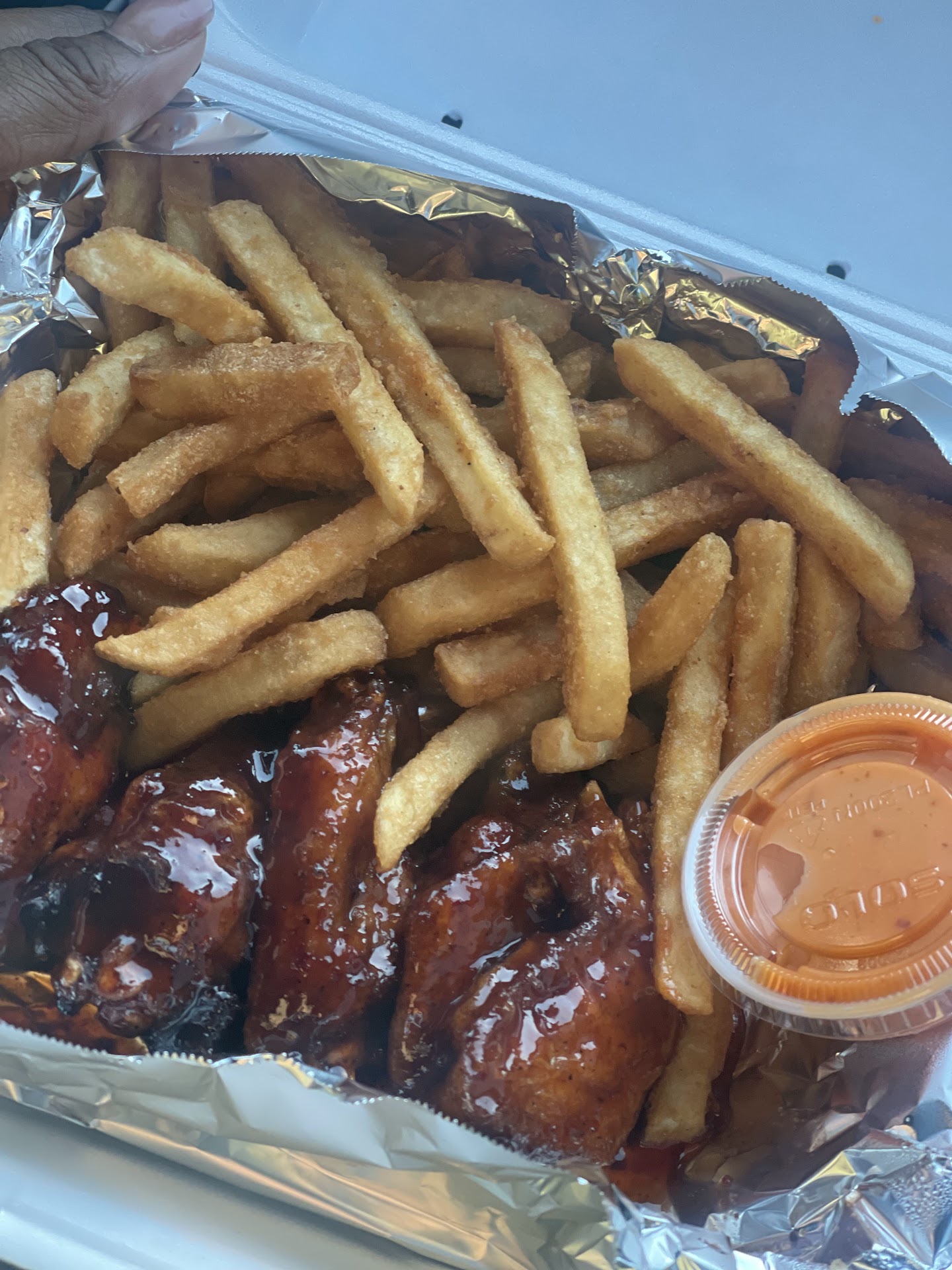 Love this place! It was not easy to find, so we called them. The gentleman answered the phone right away and helped us navigate to the food truck. Gave us a sample of the fries and couple of the sauces. We were already hooked! We ordered the seafood bowl, wings and fries. All of it was amazing! We will be back! Great food and great customer...