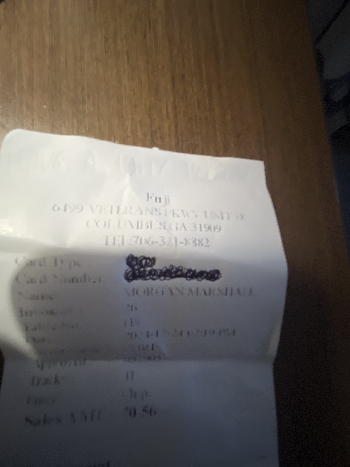 Read moreROACHES!!! NEVER EVER AGAIN!!! - If you CONTINUE to SERVE FOOD to the public KNOWING you have ROACHES, YOU ARE DEAD WRONG!!!! EVERYTHING is NOT about MAKING A DIME when it could potentially harm others, making them sick. Went in the day before Christmas during lunch around 1pm EST. All was well until we paid over $70 and gave over 20% for a tip⊠A HUGE ROACH crawled out of nowhere by the grill into one of the black cloth napkins. After telling them, the manager (I assume) with maroon hair came over and killed it with a black cloth napkin (that will still probably be used) with her bare hands!!! She said they had just had an exterminator out the day before and it probably caused roaches to roam. WHAT!!! She barely even offered an apology, except âIâm sorry for thatâ not to mention any form of compensation. To keep from causing a scene (no one was at the hostess stand) going out, scaring other patrons off, I tried to call back. No one ever answered. This is totally unacceptable after bearing through eating crunchy rice because off eggshell being left in the rice. I WILL be informing SOMEONE!!! After looking at some of the latest reviews and seeing them respond redundantly with sorry, email us, we want to hear more - Iâm almost sure they donât care about what I feel or hearing what I have to say nor will anything be done about it. This is the second time eating out in Columbus that Iâve seen roaches. A few months ago, the IHOP by Texas Roadhouse had the same issue. Iâm so over it! Iâm not sure when the health department comes through, but these two establishments DEFINITELY need to be seen. I kept my receipt in case they tried to say this review was fake, not to mention cameras donât lie. The young man serving with curly orangish-blond crinkly hair was kind. The chef was nice, but older⊠He left eggshell in the rice so everything was crunchy. Order - 2 steak/shrimp, 2 chicken all double rice...