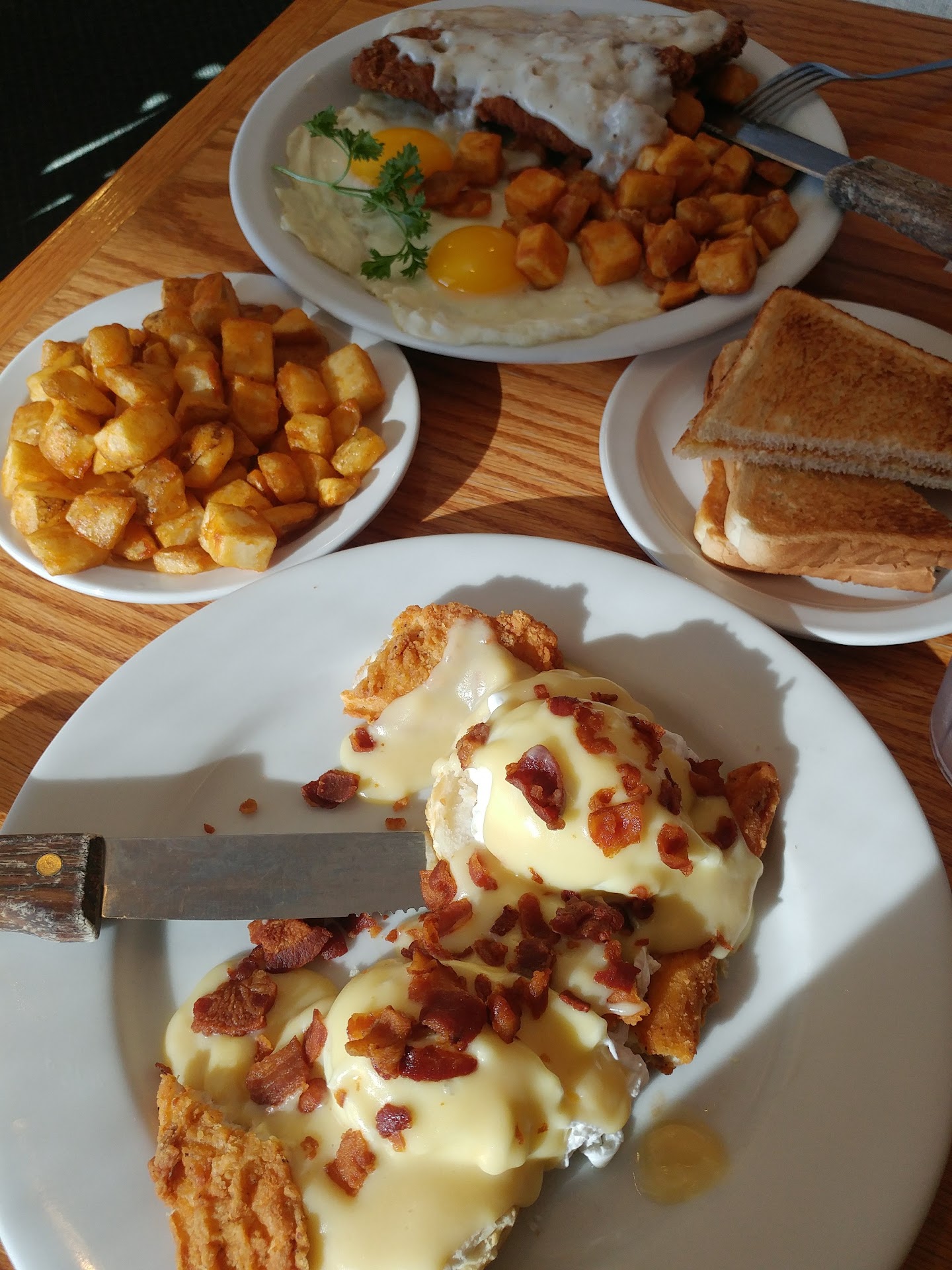Their country fried steak, sausage, home fries, hash browns, and gravy are delicious as well! I especially like their breakfast that includes pancakes because I get sweet and salty. Everything is made well and is what I expect when I think of or crave breakfast foods. Their portions are generous for their prices! The meals are delicious and comforting.