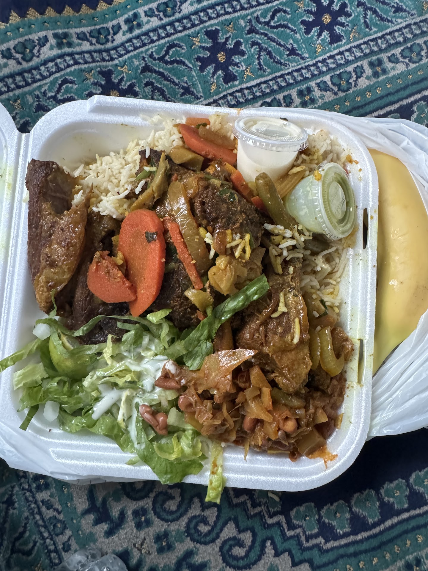 Especially like the sides they offer like the beans and veggies. If you are getting a rice and meat dish, they will usually give a little bit of the meat curry on the rice . Ask for extra :) those meat juices make the rice extra flavorful. Tastes great with the green sauce too!