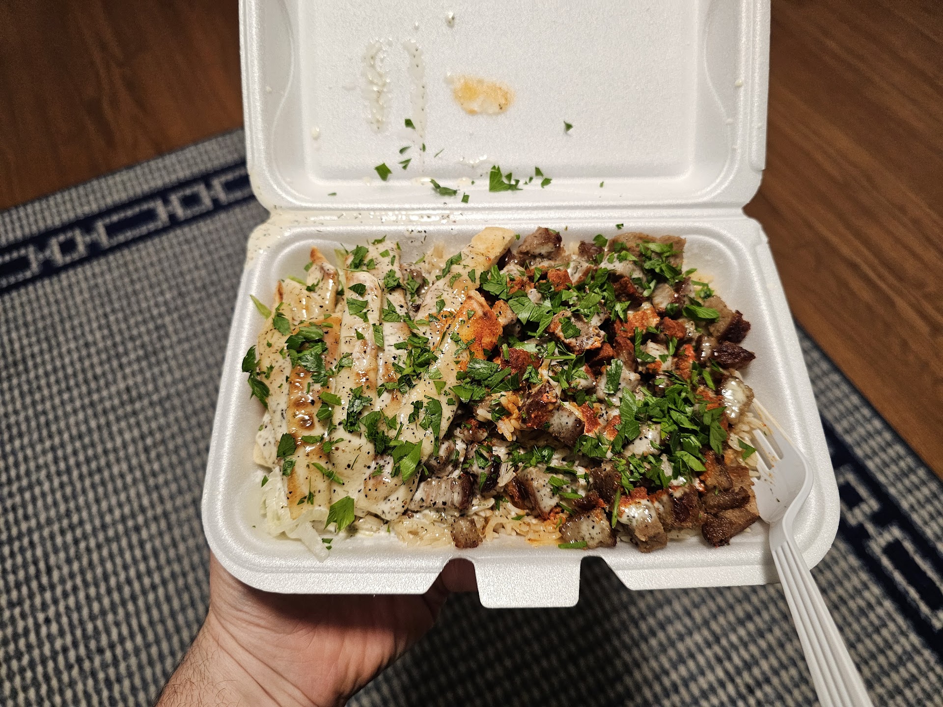 Ā Ā Ā Read moreCant beat the gyro! Had the regular lamb gyro Price/taste/quality. hands down unbeaten in town ive had gyros from all over the city. this was amazing! Chef is super cool and friendly. and hooks up loyal customers! the chicken over rice with white sauce. one serving was like 8-9 bucks and it was more than enough to feed me and even my kid! and even came with drink. Really i hope this guy sticks around ill be back. AND PS. That ONLY one star review was just wrong!!!! to see this place had 4.8 with almost 100 reviews even with that one person who was mistaken. you just cannot count this place out of your...
