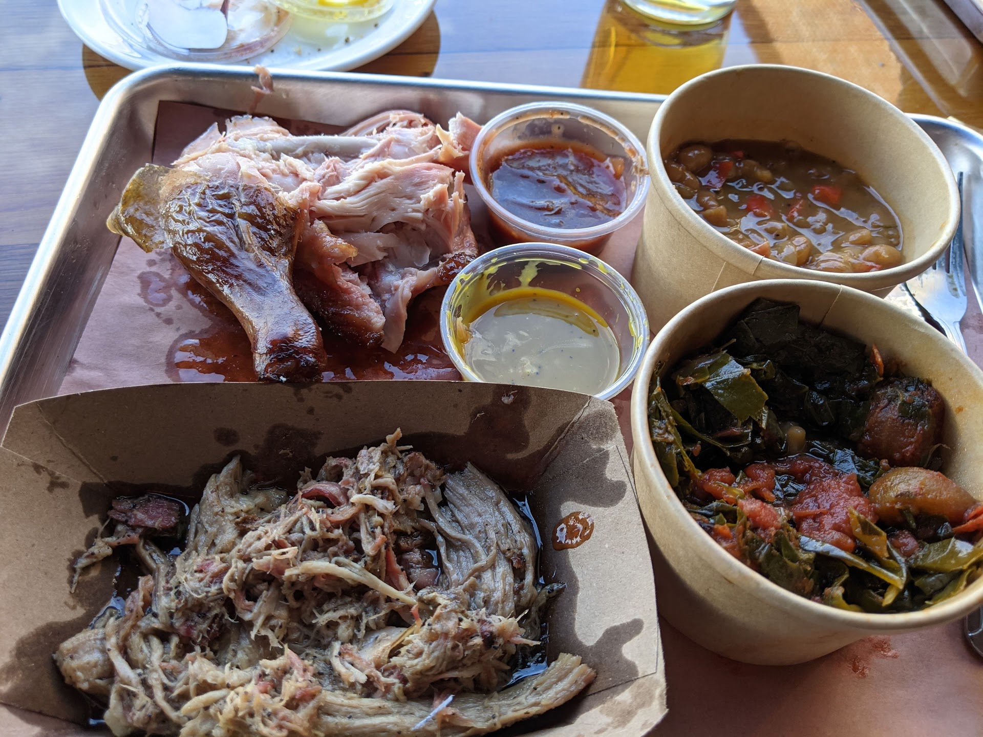 Read moreWent there on Father's Day because my other BBq place was closed. We had a party of nine and I was happy we could get a table for a large party. The service was a little slow even taking a drink order which we had seven getting alcohol so was surprised when 6 of the 7 people were waiting to get a second drink. Then when we went to order they told us that they were out of ribs. I prepared myself for ribs all weekend so come Sunday I was bummed my first choice was closed and then they waited until we ordered food to tell us they had no ribs. I got the two meat platter with the brisket upcharge and pulled pork. The pulled pork was in a small dish was roughly the size I would expect for the platter but the brisket was one piece and mostly fat. I was with my father so I was trying to keep a good attitude and enjoy the family time. They brought our food out and told us that they were also out of the chicken nuggets that my child ordered so she just ordered Mac and cheese and french fries. Also they couldn't make a drink because they didn't have ingredients for a drink. I gave it a 3 star because the food was BBQ but I feel as a BBQ joint you should make it clear you don't have ribs and not wait 25 minutes after the drink order to let people know that you are out of ribs. The waitress heard my wife go all you wanted was ribs and I just smiled through it and said it was okay and then had a fatty piece of brisket and a small dish of pulled pork. I wish I spent half the money on a pulled pork sandwich because it would have been more meat for half the price. I am guessing they were worried about running out of other things so they were giving out less. That is why I am giving three stars. If they are not busy enjoy yourself. If they are busy you may want to consider...
