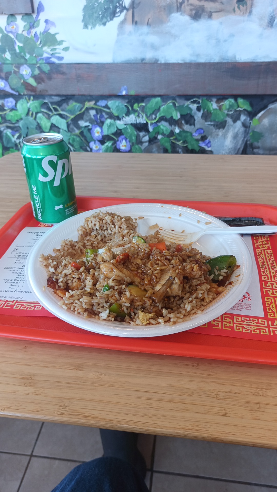 While waiting for my food, I enjoyed walking around the small dining room and looking at the many images that have been painted onto the walls that greatly enhance the interior environment at Happy House Chinese Restaurant.