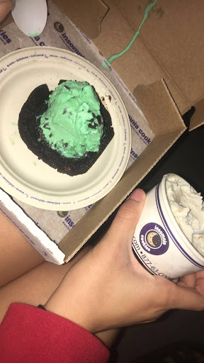 My boyfriend got a Peanut butter cup monster cookie ice cream sandwich, while I got a simple chocolate chip cookie ice cream sandwich. My boyfriend's cookie was warm, fresh, and tasted amazing. Mine, not even close. With plastic sporks, I couldn't even stab into my cookie. The spork broke, so I replaced it and continued trying to dig through the rock that was supposed to be a "hot, fresh cookie". I took 2 bites, threw it away. How am I expected to eat a rock hard cookie with plastic silverware? Impossible
