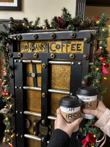 Read moreOkay the first thing you have to know is that this used to be an actual bank. you can sit inside the old vaults which still have the old vault doors attached and enjoy your coffee or whatever eats you purchased. The next thing you need to know is that the coffee and all its various forms is fantastic. whether your traditional straight up black coffee drinker or you pick one of the many lattes or whatever else they have laying around there till I'm not much of a coffee drinker although I have tried several everything they make is fantastic. to complement your beverage of choice they have some really good muffins and sandwiches and other foods that you can purchase once again all excellent. The staff is always smiling super friendly if you have any questions more than willing to explain everything to you. There is plenty of seating inside and out it's kind of fun to sit outside and watch everybody go by and pet all the puppies which saunter on by. They do have Wi-Fi and of course it is free to customers and you will see quite a few people sitting there taking advantage of that including students because of course Columbus is a college town. The Iron Bank Coffee Company also course sells its own coffees. Prices are very reasonable you can go in and have a couple large coffees and a muffin or so and only have about a 10 $11 bill. this is a favorite hang out on the weekends for many Columbus people and visitors and definitely a favorite of my lovely wife Ellie and mine. I would highly recommend making it a stop when you're downtown in the...