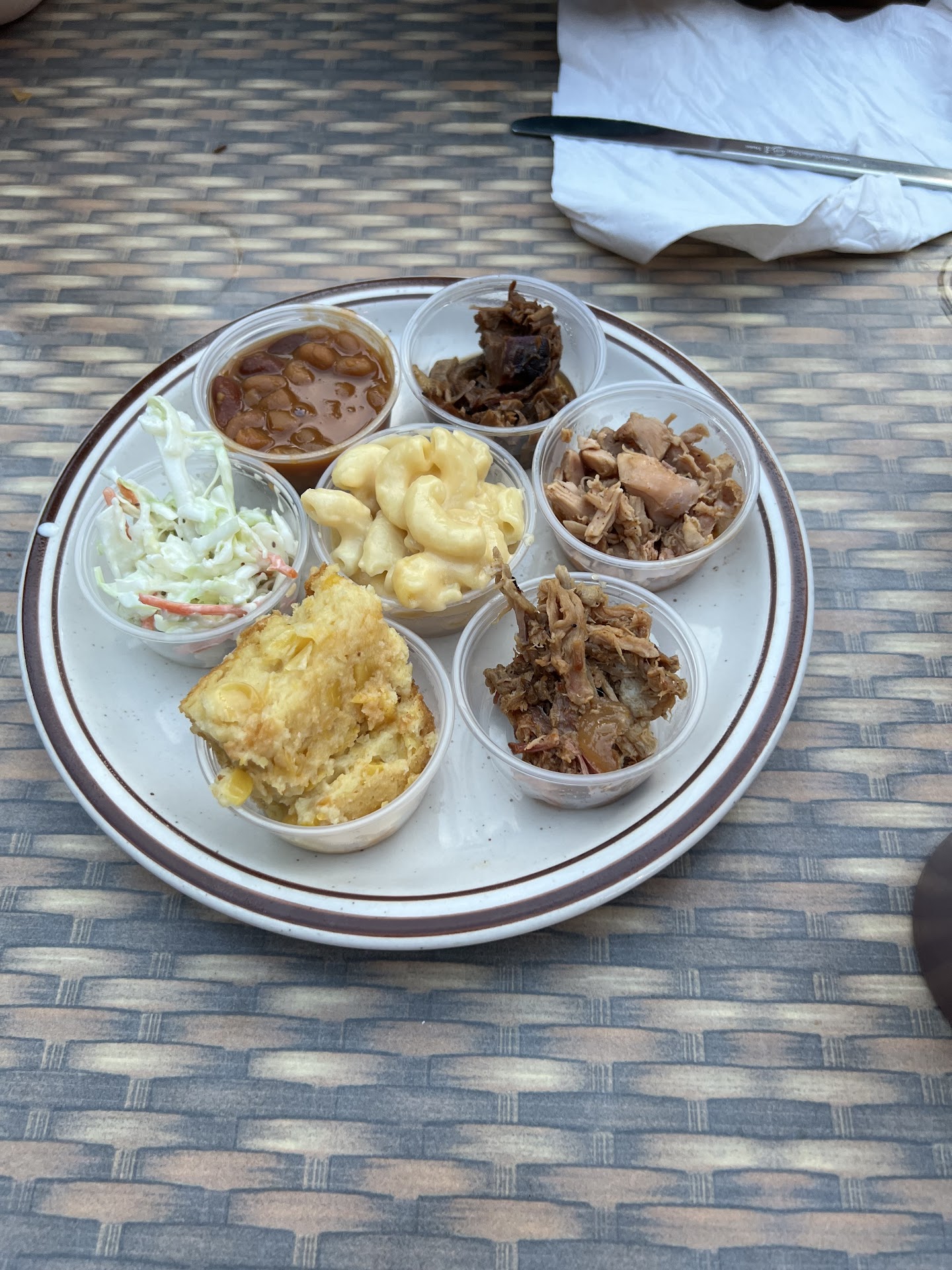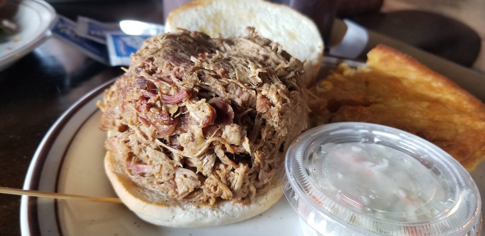 The sauces available for the meat were supposedly sweet and spicy options, but the spicy one was really more of a vinegar-based Carolina pulled pork type sauce. That would have been good to know before I put it on my brisket.