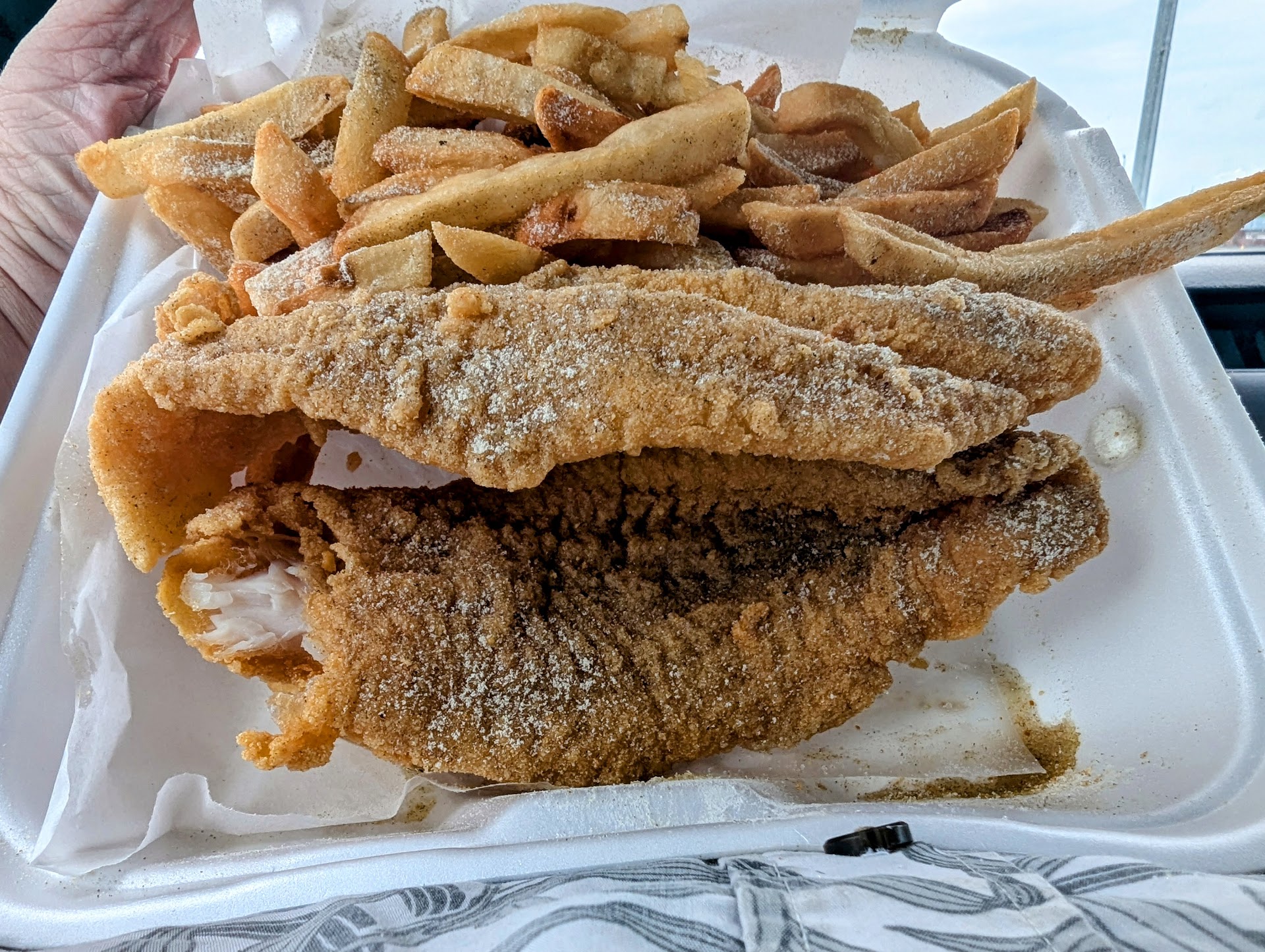 We called immediately and asked for a refund and they refused to give it to us because we had the other food and it cost more than what we got. We do not eat fish and even if we did bring the food all the way back to the restaurant, they are legally required to throw it away.