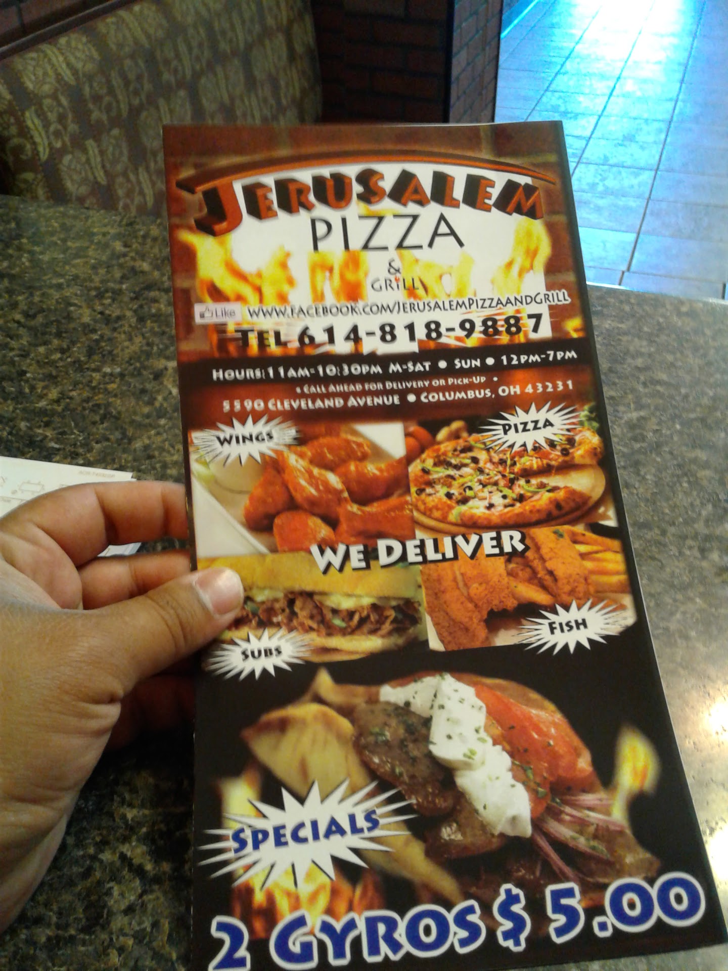 What can I say? The quality to price ratio is perfect. You get a lot of great food for a great price. My buddy and I have been traveling around Columbus trying to find diamonds in the ruff like Jerusalem Pizza and Grill. I got the gyro combo that came with 2 gyros, friends, and a drink for 8 bucks! That's a steal in my opinion. The gyro was a solid 9/10 and the fries were a good 6.5/10. I'll definitely be back to try more items on their menu. Lastly, the cashier was really chill and helpful!