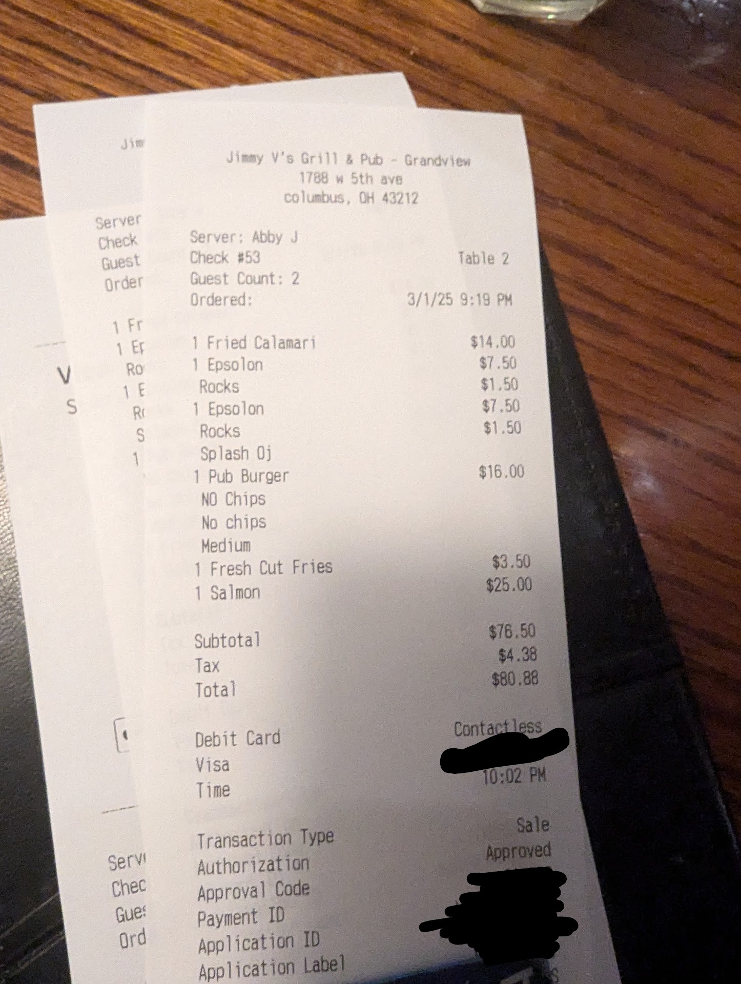 I ate a delicious meal recently 2-25-2022] at Jimmy V's Grill & Pub Grandview.