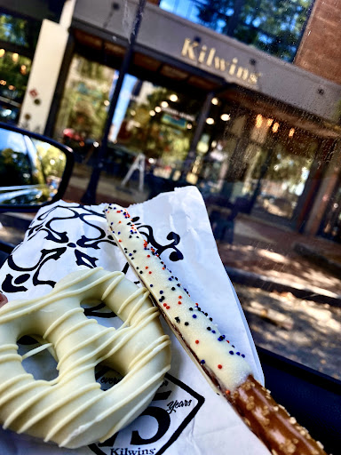 Kilwins is pretty expensive -- but WORTH EVERY PENNY! Much better than cold stone creamery (which is very expensive but not worth the money at all). Our total for a double scoop waffle cone and a double scoop waffle bowl was just over $20. The friend I eat ice cream with has a favorite flavor that she gets everywhere we go; mint chocolate chip. She says that Kilwins' mint chocolate chip is the best in town! I usually get just plain chocolate but, they have these little spoons for tasting the various flavours, and I fell in love with the sea salt caramel! So delicious! We found this shop because we we're searching for my daughter's favorite flavor, Superman ice cream, and kilwins was the only place in town that had it. Thank you, kilwins!