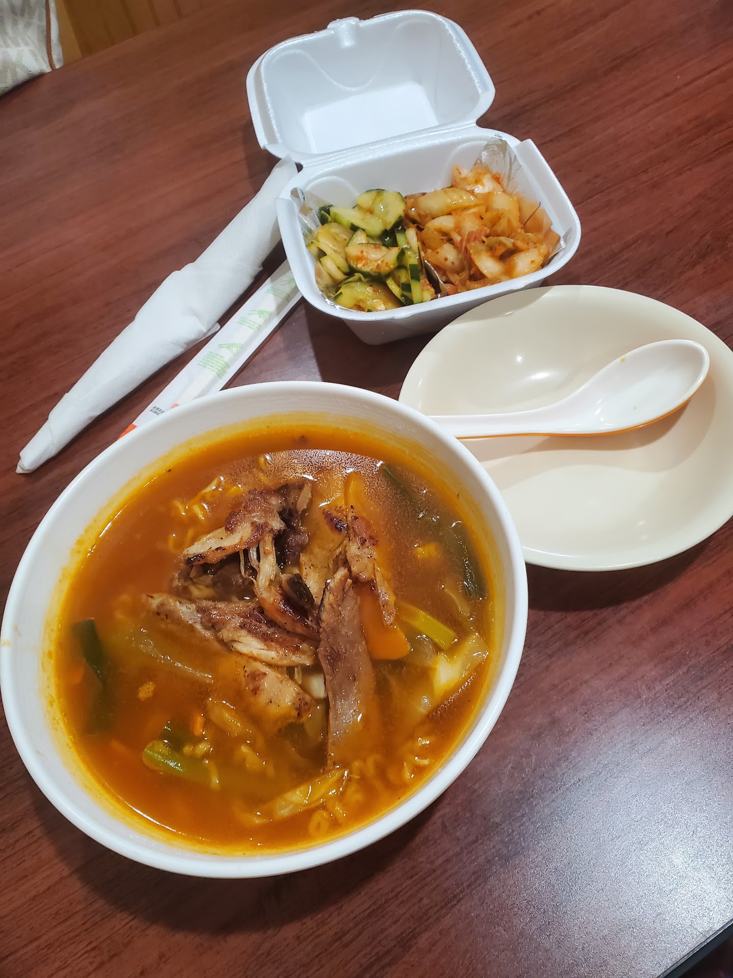 Read moreFirst time trying Korean cuisine, fortunately I had my son in law who served in Korea to help me out. Our party was made of up of 5 adults and 2 children for dinner. The restaurant is spotless, super clean and well maintained with a couple of tables and quite a few booths. While there it appeared that most of the business is takeout, however if you dine in the young lady who is the hostess, takes your order and is also the waitress was exceptionally polite and professional. Five star service! Our order was quite large, however everything came at the same time hot and fresh, compliments to the chef! And wow what a lot of food, the dinners come with side dishes of kimchi, cucumbers, radishes and rice noodles. Everything was delicious and we had plenty to take home. Even my son in law was very impressed. Also, they have a small ice cream cooler with Asian ice cream, don't miss the chance to have some. Overall a great experience. Our bill came to just under $200 including tip which we all felt was more than fair for the service, the quality and...
