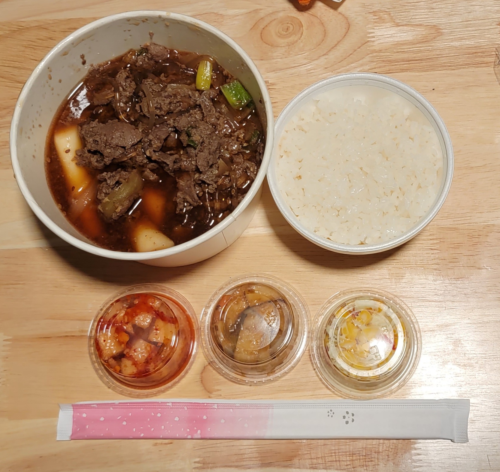 Flavor for days!! I got the Beef Bulgogi and a Chicken Egg Roll. The beef was good and tender. The broth and flavor was superb. It lingers in your mouth so you can savor the flavor! Lol The glass noodles were well cooked and the rice cakes were a nice touch. Even the side of rice was perfectly cooked. They also included some small cups of toppings to mix in if you wish. The egg roll was jam packed with goodness and not greasy at all. It came with a packet of Sweet Chili Sauce. The staff was friendly and prompt to take my order. I Sat and waited for my order and was brought out to me as soon as it was done. In the bag was also cutlery, chopsticks, and napkins. A+ Experience! Also I should note, this is inside Saraga International Grocery in the front back corner, left of...