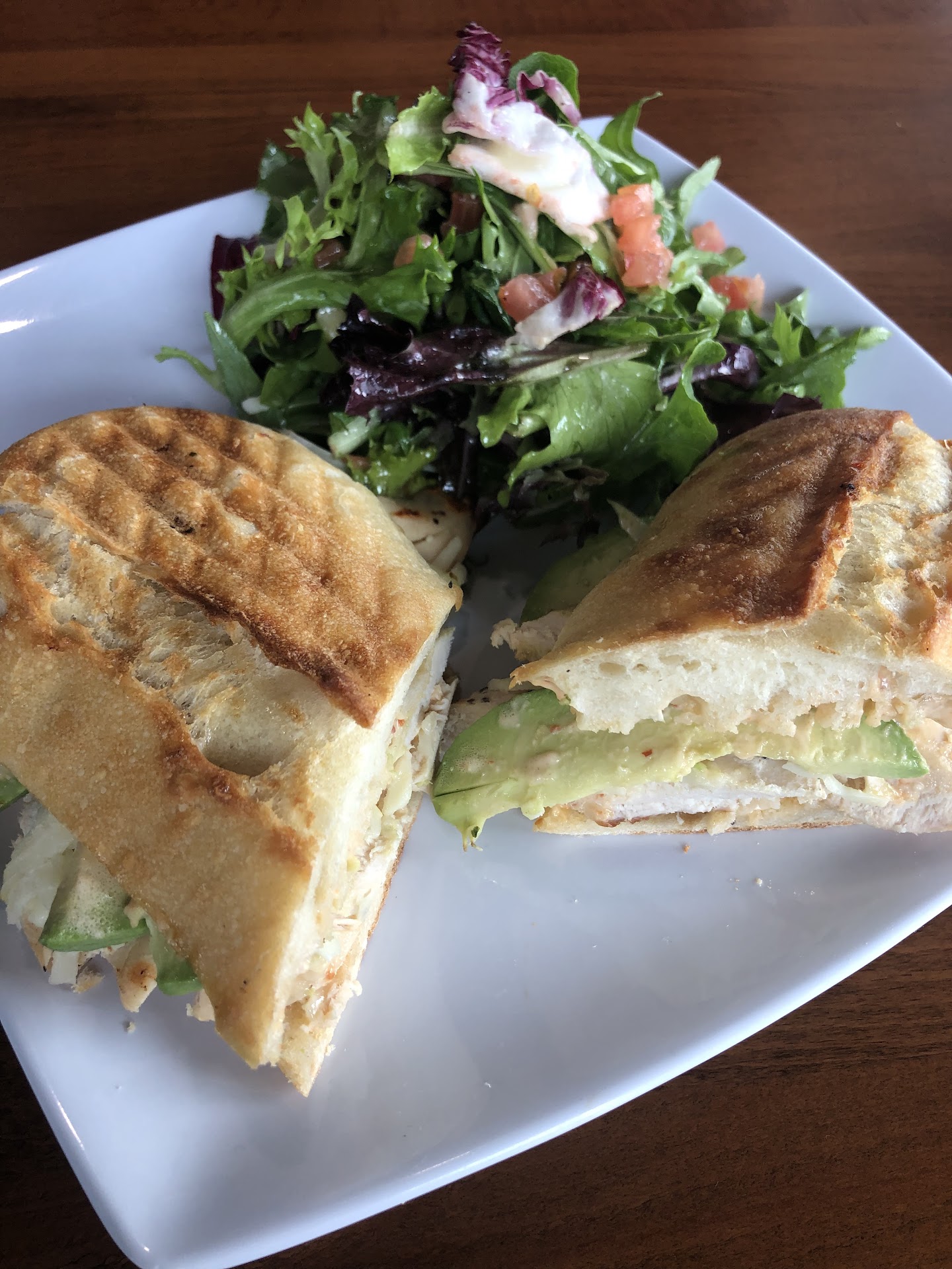 I came here for lunch with high expectations due to all of the positive reviews. Upon entering I found the menu was on the wall and was hard to read with the glare from the windows. I asked and they do not offer paper menus. I chose the panini with Chipotle Chicken and potato skins. The gentleman taking my order informed me they did not have the potato skins, so I decided on the salad. In choosing a new side I forgot to pick the bread for my sandwich and he did not offer a choice, instead deciding for me. It was only a short wait for the food. While waiting I looked around and noticed everyone was finished eating yet they all had a pile of dirty dishes on their table. The first thing I tried was my salad. It was greens and tomatoes tossed in what tasted like plain olive oil. It couldn’t have been more boring and unimpressive. The sandwich was chicken, cheese and avocado. The sauce had good flavor, but the bread was so hard that when I tried to take a bite it squished all of the chicken and avocado out. The whole time I was eating my sandwich I had to fight with the bread and try to hold the ingredients inside. Needless to say for $17 this plate was a huge disappointment. In my opinion it was way overpriced for what you get. The atmosphere of the restaurant was nice except the “background” style music was way too loud. Maybe we made a mistake by not choosing breakfast. I think if you’re going to charge high prices then the food should be great. I could’ve made the exact same thing I ordered at home for way less and next...