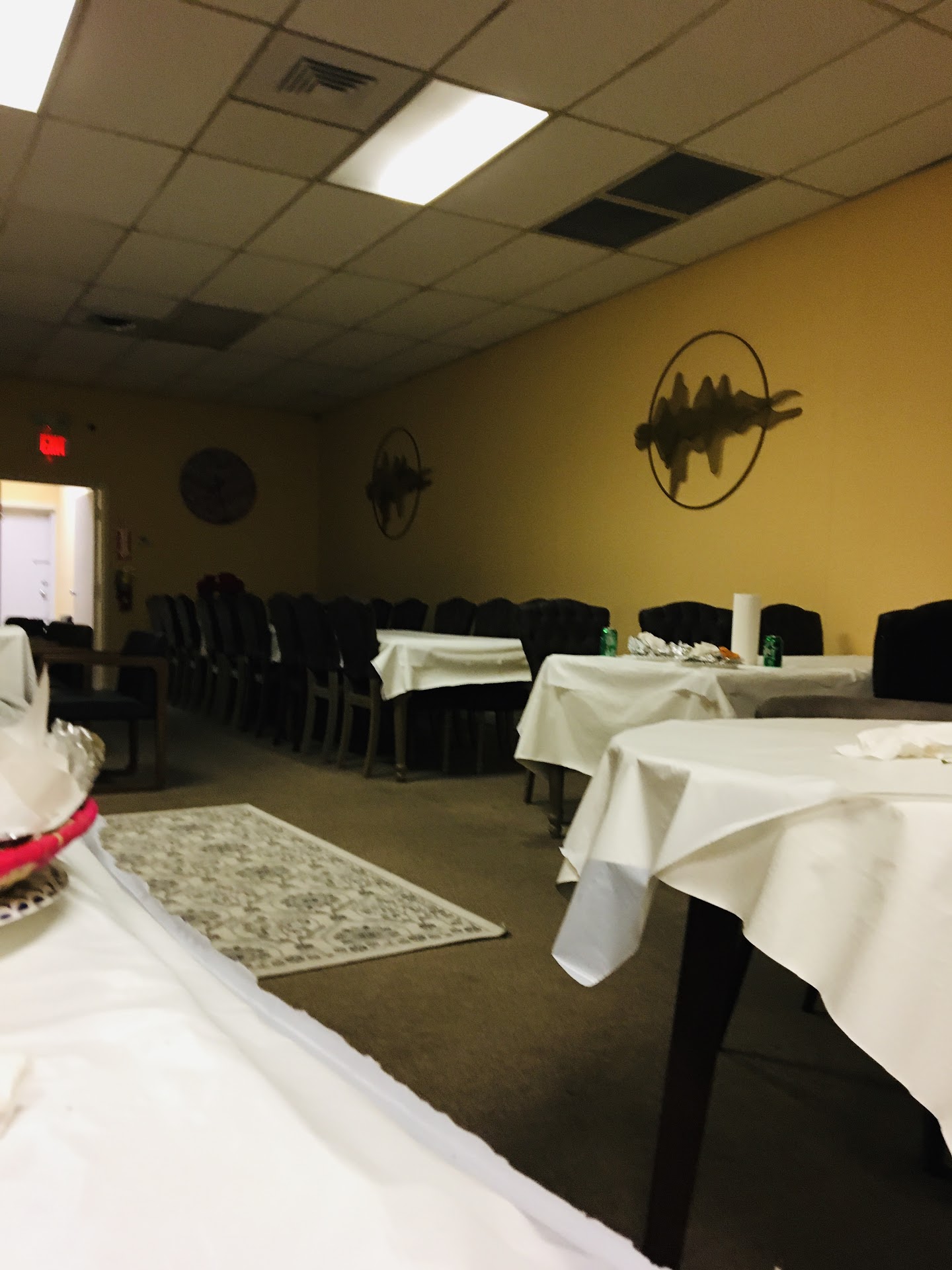 The restaurant looks nice on the inside, I liked the decorum, the walls and hanging decorum. The chairs and tables were good, comfy, high level stuff. The carpet smelled and was dirty. I'd take out just because of that unless you want to smell like old curry after awhile.