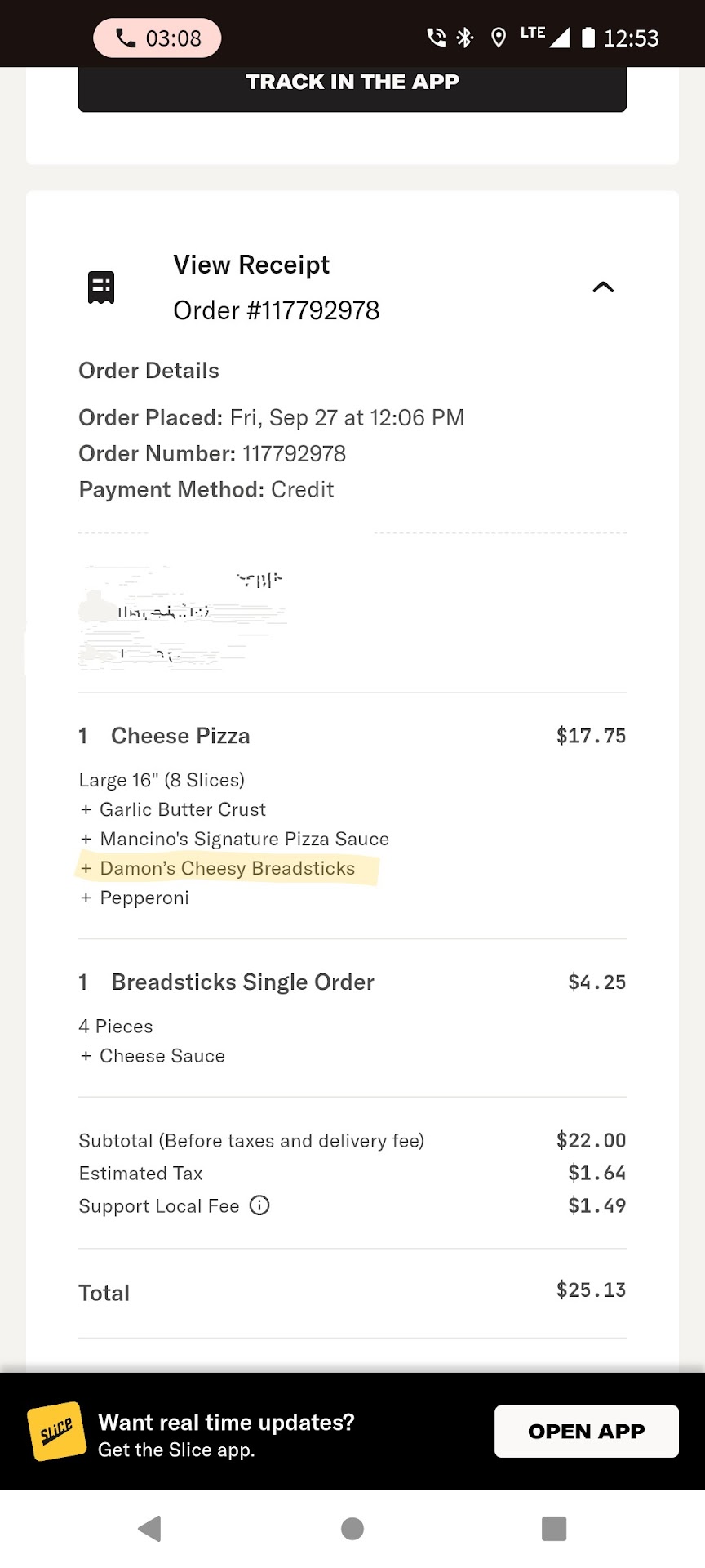 We ordered pizza this evening through the app at 5:35, and when our pizza should have been arriving around 6, we received a text instead from our delivery person informing us that a person came in and took our order posing as our delivery person. We contacted Mancino’s, and they told us we had to cancel the order, which they would refund, and order again. It’s now almost 7, and the kids are hungry and bedtime is delayed. The person on the phone told us “we don’t know that they stole your pizza, maybe they just delivered to the wrong house.” And then also proceeded to inform us this happens a lot. Are there no repercussions for people stealing other peoples orders? If I were a decision maker at Mancino’s, I’d want to address this ASAP. It’s a bummer because we love the pizza. But it’s too much money for this much headache, and I won’t...