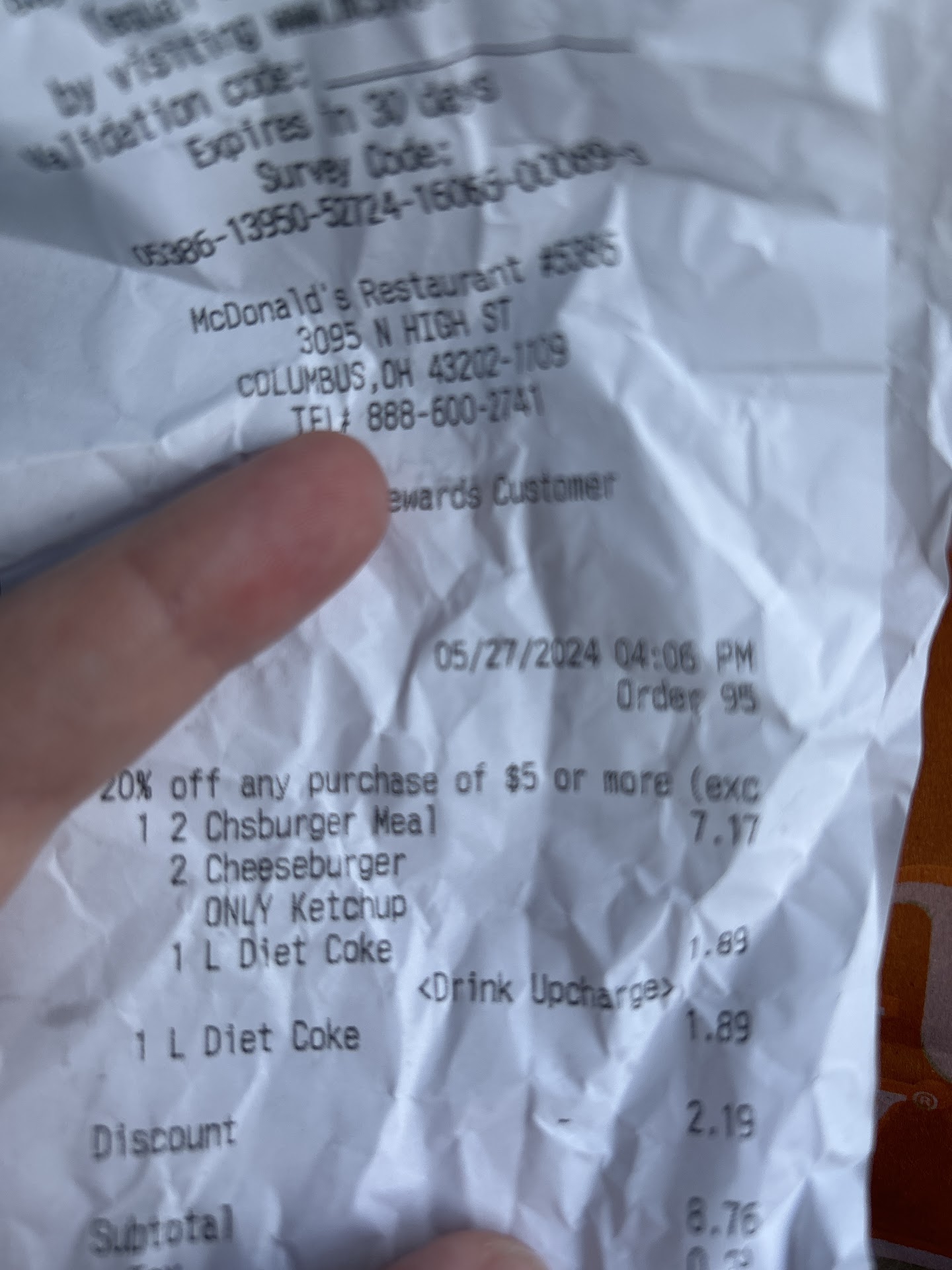 Ā Ā Ā Read moreWe came through and immediately was greeted by a new employee who clearly seems to be a minor, she was very rude toned. We asked for 2 number 7 meals like we do every time we come in and at first she rang us up for just 2 cheeseburgers. We asked for large diet cokes, she then charged us for one. We said no we would like for them to be meals, she proceeds to make only one meal and charge us for a separate drink. We tell them we wanted 2 meals, and they got upset with us because I said she was not listening properly to us and made me use my code on only one meal and then I was not able to use it again on the second. Which they then charged us for 2 cheeseburgers and a separate fry, so we then had to initially pay for more even though we were trying to get the cheapest option. I then call to complain about her very rude attitude and how she was actively banging our card off of the counter waiting for me to get a second code huffing the entire time and giving us attitude every time she spoke. The manager then lies to me and says he was standing right there and she was not rude. You made us pay more for food when we shouldnāt have had to. And was very rude. We also asked for only 2 of the cheeseburgers to be made ketchup only and they made all 4 of them ketchup only. And two of them have no cheese. Like you guys acted...