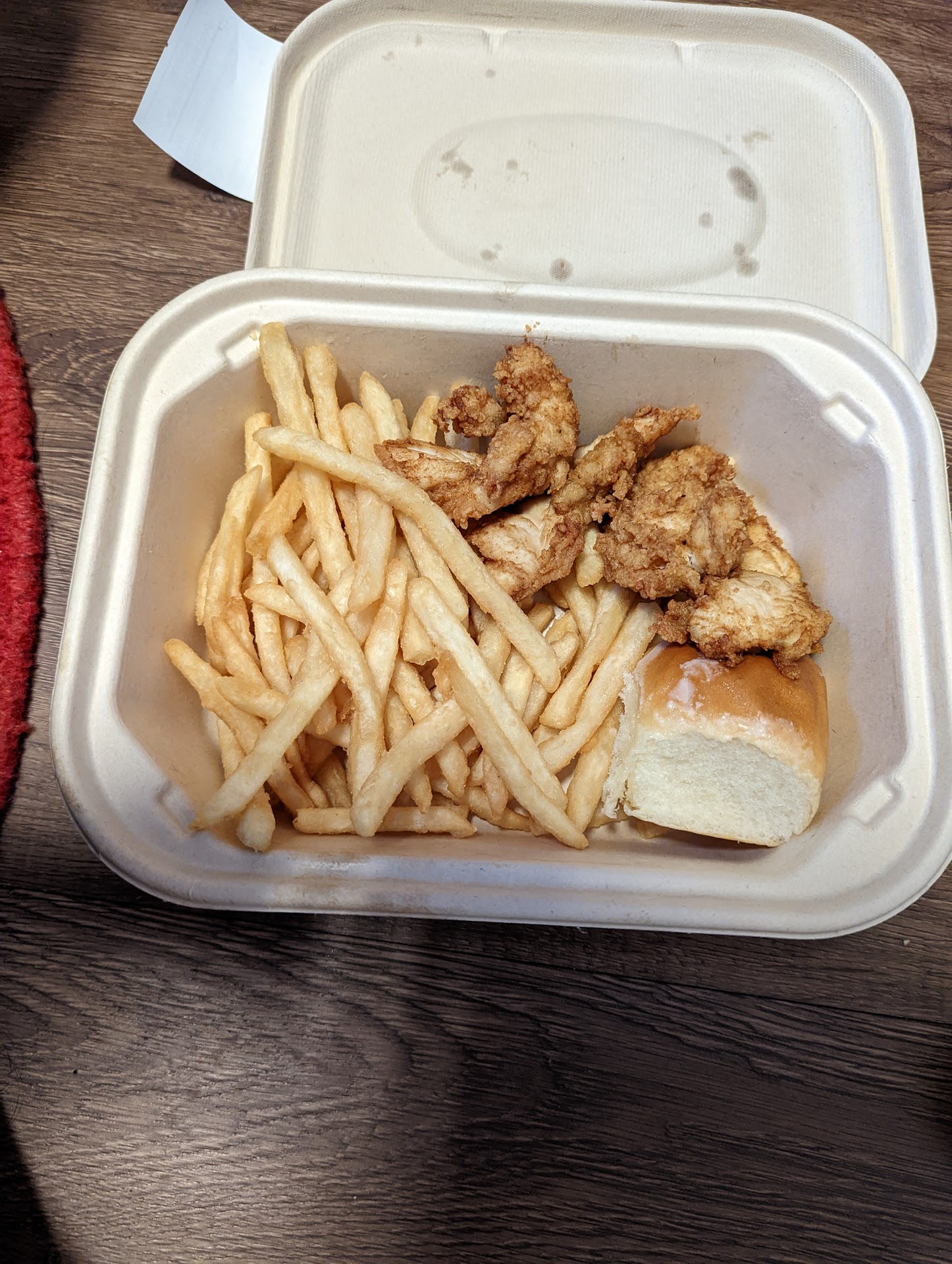 Read moreThere's a nice, rustic feel to this place. One good thing about it is the choice you have in seating. Couch, booth, chair, there's even a standing counter/table area! My only complaint about the physical area were the glass barriers, that afford little to no privacy. Now, on to the food: the chicken fingers were average. In my opinion, deep fried foods should go light on the breading. The french fries are a bright spot, ranking somewhere between Rally's/Checker's and Five Guys. The mirror lake sauce, I can only describe as a well-meaning attempt to emulate Cane's sauce. Mirror Lake's, the pride of Ohio State's sauce, was overly tart and acidic. After suffering through a couple bites with it, I switched back to the tried and true BBQ sauce. Ambient lighting and friendly staff lead me to believe that a second trip is in...