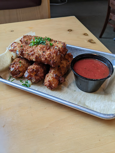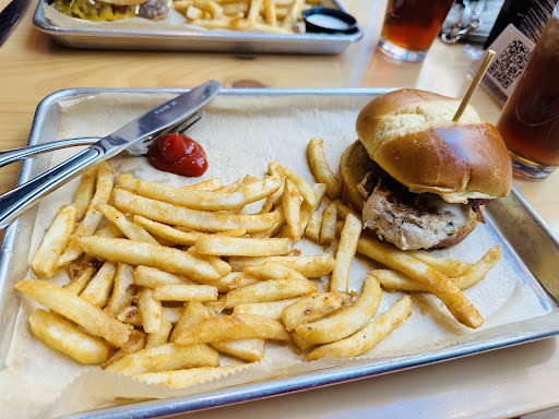 Read moreI stopped here for a bite to eat with a co-worker for lunch. We were quickly greeted and seated by a very friendly hostess/server. I liked the design aesthetic (elevated pub-esque) of the place and the brightness, thanks to the large windows. I ordered an Iced Tea and the Front Street Chicken Grill sandwich (grilled chicken breast, topped with mozzarella, sautéed mushrooms, sliced smoked bacon, and honey mustard dressing). It sounded great - but, that was about it. The food came out suspiciously quick. While I was excited about that, I was a underwhelmed when I took a bite and the chicken was cold in the middle. The chicken had that kind of mushed rubbery processed texture (think nuggets without the fried breading to mask it). But, the saving grace of my meal was absolutely the fries. Maybe was an off day, but I cannot...